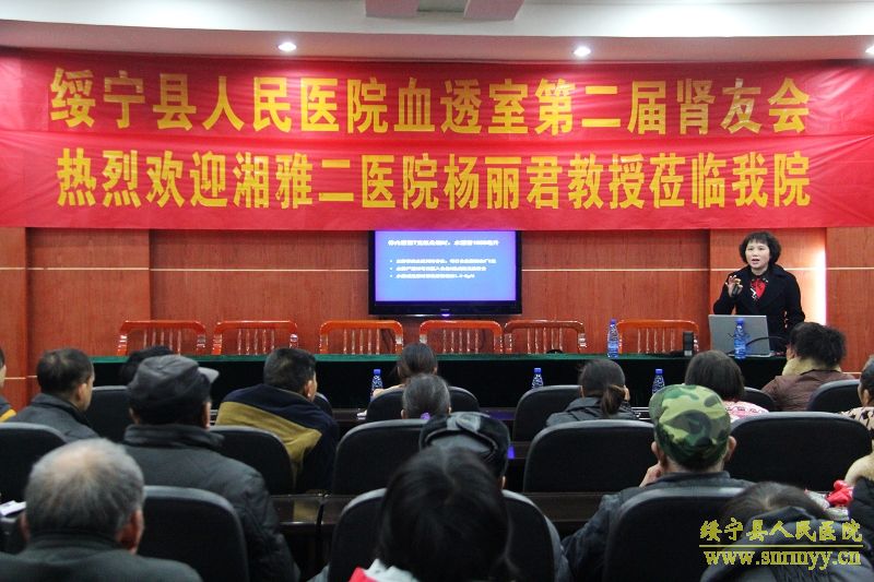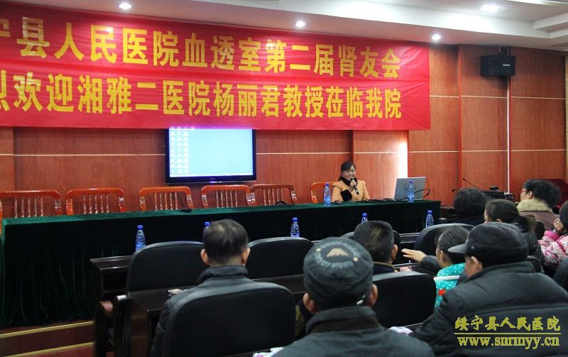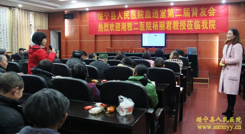 1月10日,县人民医院第二届肾友会如约而至,湘雅二医院血液净化中心护士长杨丽君教授、县人民医院副院长郑珍及血透室医护人员与80余名血透患者、家属共聚一堂,交流互动、分享经验。 活动中,杨丽君教授作了《透析病友需注意的几个问题》专题讲座,以讲故事的方式为病友们分析了生存现状,并就血液透析患者的饮食、内瘘的保护、高血压、贫血的自我管理及如何提高血透患者的生活质量进行了详细讲解,让肾友们认识到了“三分治疗,七分护理”的道理。特别值得一提的是,两位肾友代表勇敢上台发言,与大家一起分享了自己透析后的心路历程,鼓励刚进入透析队列的肾友们直面人生。活动还通过穿插有奖知识问答,加强患者与医护人员之间互动。不少“肾友”感慨道:“通过专家们的讲解,让我觉得只要积极配合医生护士的治疗,增强自我管理的能力、保持乐观的心态,透析也并没有那么可怕。肾友会真的就像家一样温暖”。 据悉,绥宁县人民医院肾友会成立于2012年,旨在为患者、家属及医务人员搭建起一个知识普及、经验互换的交流平台,进一步增进血透患者及家属对透析及相关知识的了解,提高自我管理的意识和能力,改善生活质量,帮助患者树立回归社会的信心和勇气。 (编辑:黄铭培、付文娟)