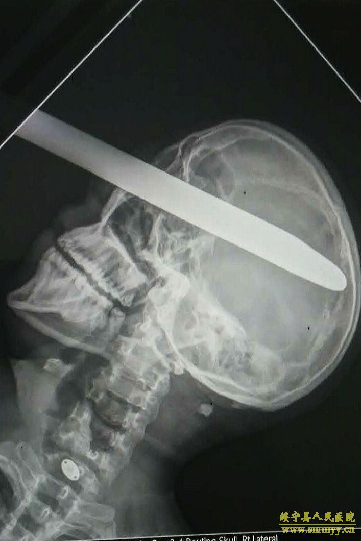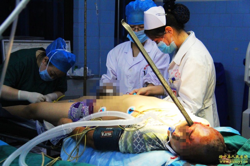 轮胎爆炸“飞”来横祸 修车师傅遭撬棍穿颅 修车过程中轮胎突然爆炸,28岁修车师傅李某惨遭弹冲而出的撬棍穿颅,经我院手术救治,撬棍被成功取出,术后伤者生命体征平稳,日前,已转入省人民医院进一步治疗。 5月12日晚18时许,轮胎爆炸的巨响过后,工友们惊恐的发现李师傅瘫倒在地,撬胎用的撬棍从右眼角处直直的扎入了他的颅内,“快,送医院!”,生命守卫不眠夜就此掀开! 20时许,呼吸困难、四肢抽搐、呕吐不止、昏迷不醒的伤者被送入我院,急诊检查后立即启动绿色通道,直送手术台。由于撬棍长达100cm无法通过CT机,术前资料仅有一张X线照片,颅内情况无法详知,手术难度大、风险大;但患者情况极度危急,时间就是生命,无影灯下副院长沈建辉、外三科主任刘兴淼、医师袁卫华经过紧急商讨,立即实施手术! 历经7个小时手术,插入伤者颅内的撬棍被成功取出。据医师介绍,撬棍插入颅内长达18.5cm,所幸的是术中没有出现颅内大出血。 (编辑:黄铭培 付文娟)