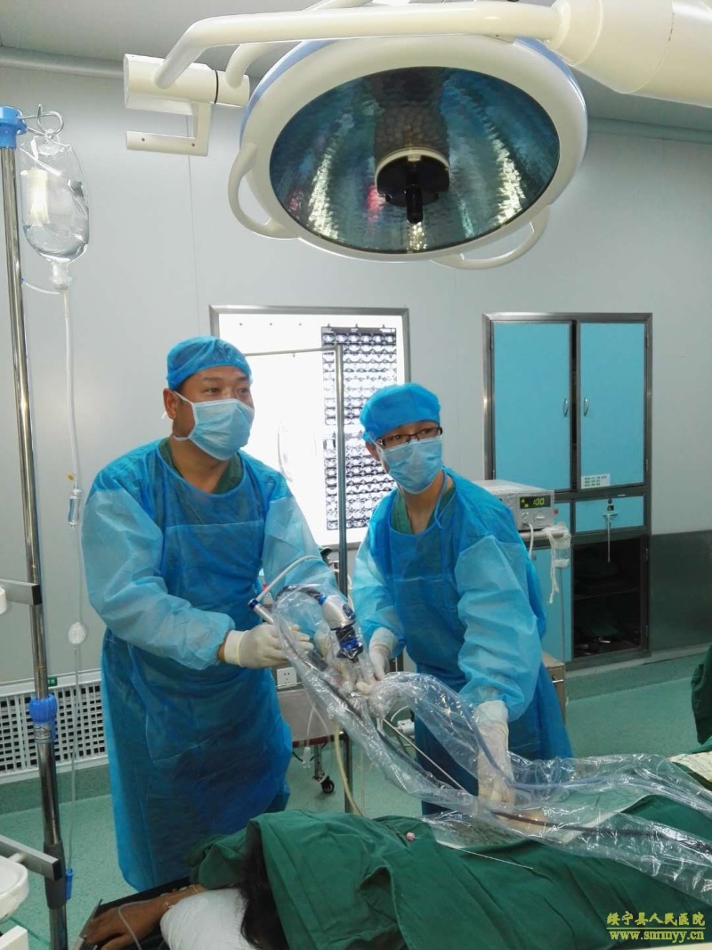 多镜联合治结石 4月6日,处于休假期间,但绥宁县人民医院泌尿外科的医护没有休息,在科主任张华生的带领下,打破常规,挑战高度,成功完成了一台复杂的结石手术。 据悉,患者姓杨,是一位60岁的男性患者,因"间断性左侧腰痛2年,再发伴尿痛2天"入院,经检查后发现患者左肾、左侧输尿管、膀胱内均有多发结石。针对这种结石,传统的手术方法至少需要开3刀,且需分期进行,使得患者痛苦大、治疗周期延长,费用也相应增高。肾结石开刀手术后劳动力会严重散失,即使采用现在流行的微创手术,常规也得分期进行,患者免不了多次手术的痛苦。为进一步减轻患者痛苦,绥宁县人民医院泌尿外科的医师们经过慎重考虑,决定打破常规,制定了多镜联合取石的手术方案。手术在4月6日顺利进行,术中联合膀胱镜、输尿管镜、经皮肾镜进行了长达70分钟的治疗,使得出血量不超过5mL且伤口仅0.5cm,一次性将患者膀胱,左侧输尿管,左肾结石全部取出。术后第五天经复查无任何结石残留,4月13日患者顺利出院。 目前,绥宁县人民医院泌尿外科在微创手术治疗各种尿路结石的技术上,己非常熟练。结石在整个邵阳地区发病率都很高,平常多喝水,每天饮水2000ml以上,调节饮食生活习惯,坚持锻炼可以有效预防结石发生,定期的健康体检也是预防结石的有效措施之一,可以早期发现结石,及时治疗。(图文 付志峰 编辑 谢雅玲) 图为:泌尿外科主任张华生、副主任付志峰进行手术时场景 图为:膀胱结石显象→手术碎石中显像→膀胱结石碎石后显像 图为:输尿管结石显像→输尿管结石碎石后显像 图为:肾结石显像→取出的肾结石标本 图为:术中建立穿刺通道 图为:术后留置的引流管 图为:术后伤口情况 |