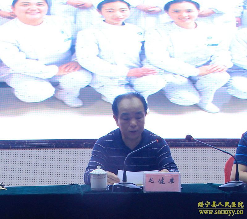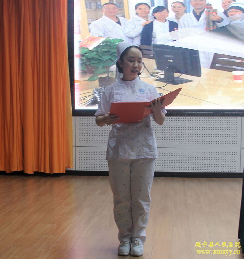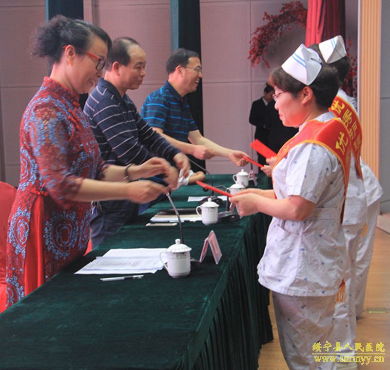 我院召开纪念“5.12”国际护士节暨表彰大会 5月11日晚上,县人民医院纪念“5.12”国际护士节暨表彰大会在外科楼13楼会议厅隆重举行。会议由副院长龙章林主持,郑珍副院长宣读了优质护理服务先进科室及个人,400余人参加大会。 大会伴随着悠扬的院歌乐曲拉开了帷幕。首先,院长龙健安热情洋溢的讲话,向辛勤工作、无私奉献的护理人员致以节日的问候和崇高的敬意,向获得表彰的优质护理服务科室及优秀个人表示热烈的祝贺;同时鼓舞全院医护人员向标杆看齐,继续优化护理管理模式,努力促进护理质量持续提升,真诚对待每一位患者,在医护工作中再创佳绩,再立新功。 会上,优秀护士代表肖丽萍以慷慨激昂的朗诵形式赞美了护理工作者无私的爱。随后进行了2018年优质护理服务先进科室、优质护理服务管理者、优秀护士长及优秀护士表彰。 会议还宣读了湖南省卫生计生委、湖南省中医药管理局《关于对优质护理服务表现突出集体和个人进行通报表扬的通知》(湘卫函〔2018〕232号文件)。我院神经外科被评为湖南省优质护理服务表现突出科室,肖丽萍被评为湖南省优质护理服务表现突出个人;陶玲萍、唐小洁、彭凤莲被评为邵阳市三十年护理贡献奖。同时传达了《绥宁县2018年安全生产和环境保护工作》会议精神,布置了“省文明标兵单位”建设工作。(编辑 雅玲) 图为:大会现场 图为:院长龙健安致辞 图为:副院长郑珍宣读表彰决定 图为:护士代表肖丽萍演讲 图为:院领导为获奖护士颁发荣誉证书 图为:院领导与获奖护士留影