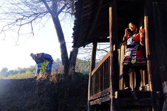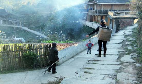 多逸寨纯朴的少女让男人们向往(多逸寨苗族917人,占全村总人口的75%) 独特的鸡公岩让人念念不忘。多逸寨村是少见的人间净土,神奇的风光,神秘的色彩,为这片净土造就了人间仙境。 他的每一条皱纹都纪录了多逸寨的历史 山村景色就在眼前。它别致而整洁,卵石垒墙,青石板铺路,前临河滩,背村青山,显得清秀幽静。山坡上桔红色的大柿子挂满枝头,好像在这蓝色调的画面上撒上点点朱红,顿觉火红醒目,富有生气。 隐藏在深山不沾俗世杂质的女孩,多了几分清新,也让游人多了几分愉悦。对她们来说,虽身居深山但阻挡不了少女那片朦动的心
