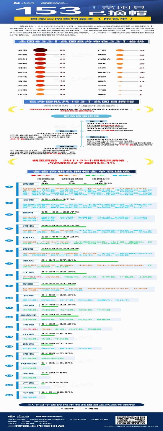 原标题:图解:153个贫困县已摘帽,西藏云南贵州最多(附名单)