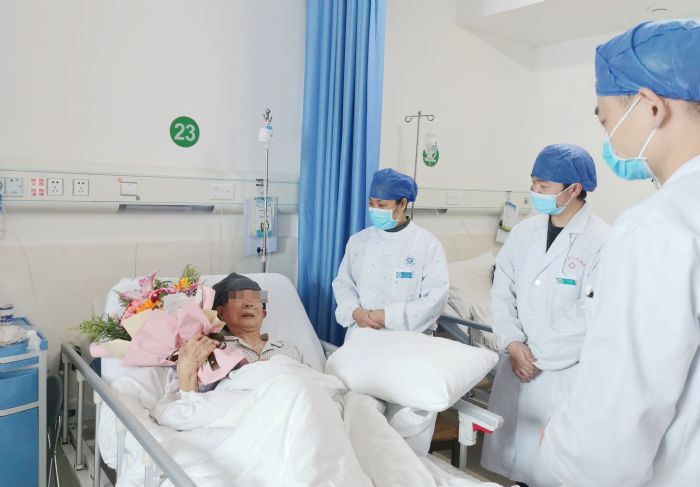 术后医护人员献上祝福的鲜花 近日,县人民医院神经外科团队在湘雅医院驻绥帮扶神经外科专家谢源阳博士、麻醉科专家邹宇博士的带领下,仅用时30分钟,成功为一名90岁高龄的老人实施颅内血肿钻孔引流术,标志着县人民医院神经外科超高龄患者救治水平又迈上一个新台阶。 2月14日,头晕已两个月有余的屈老爷子在家人的陪伴下来到县人民医院就诊,经完善头部CT等相关检查,发现老人右侧额、颞、顶部慢性硬膜下血肿,收住该院神经外科治疗。考虑到患者高龄,且患有冠心病、高血压等多种基础疾病,全麻风险高,湘雅医院驻绥帮扶神经外科专家谢源阳博士、麻醉科专家邹宇博士和县人民医院神经外科主任黄敏反复分析病情,并与家属充分沟通后,为屈老爷子量身定制了“头皮神经阻滞+局麻+钻孔引流”的手术方案;屈老爷子在神志清醒的状态下接受了手术治疗,手术过程顺利,用时仅30分钟。 2月23日,康复出院的屈老爷子将一面鲜红的锦旗交到神经外科医护人员手中,感谢他们的妙手回春和精心照护。 (编辑:付文娟) |