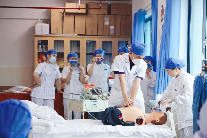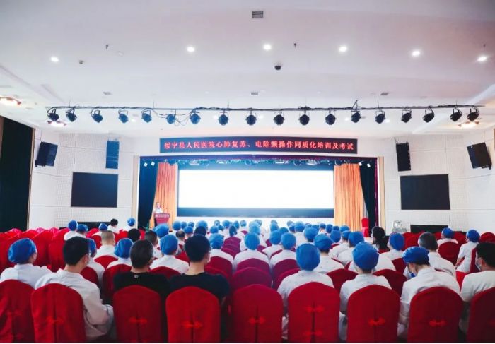 绥宁县人民医院开展心肺复苏及电除颤操作同质化培训与考核 为加强医院人才队伍建设,不断提高医务人员岗位胜任能力,提升医疗质量水平,6月10日至14日,绥宁县人民医院在外科楼大会议厅组织开展心肺复苏及电除颤操作同质化培训与考核,院长沈建辉出席并讲话,全院100余名中层干部及科室代表参加。 院长沈建辉强调了临床“三基三严”训练与测试的重要性,他要求,一是要“言必行”。加强动员部署,统筹工作安排,积极开展培训与考核,应学尽学、应考尽考;二是要“行必果”。坚持理论与实践并重,以学促练、以练助学、常学常新,不断提升理论水平和操作技能;三是要“果必信”。牢固树立“生命至上”理念,不流于形式,不走过场,扎实推进“三基三严”训练“进行时”,进一步加强医院急救的规范化、自主化和标准化。
