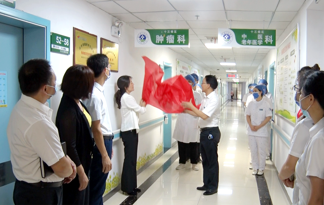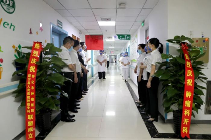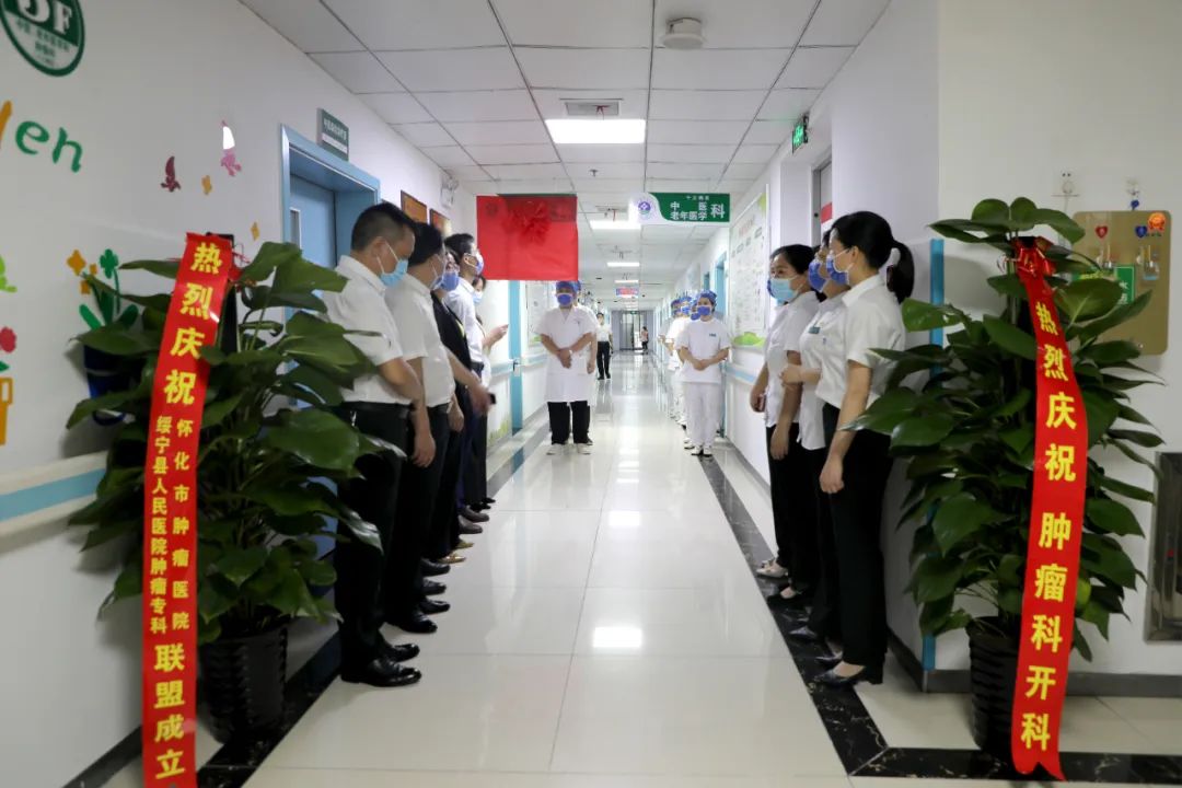 【大病不出县】绥宁县人民医院肿瘤科正式开科 6月29日,绥宁县人民医院肿瘤科正式开科并举行揭牌仪式。县委常委、县委办主任袁玲,县人民政府副县长周元彪,县卫健局党委书记、局长莫丛英,党委委员、副局长张吉忠出席揭牌仪式。 科室简介:绥宁县人民医院肿瘤科拥有县内唯一的无痛规范化癌痛病房。科室常规开展各种实体肿瘤,特别是肺癌、乳腺癌、鼻咽癌、胃癌、结直肠癌等肿瘤的化疗、免疫、靶向治疗,各种实体瘤CT引导下穿刺活检,肿瘤患者疼痛的规范化治疗和PICC置管术。今后,我们将借力怀化市肿瘤医院专科联盟的有效平台,通过在组织管理、专家守点指导、人才培养、双向转诊、资源共享等方面开启密切合作,开创肿瘤疾病的规范化、个体化、精准化诊疗和肿瘤科的标准化建设,并逐步开展肿瘤的介入、消融等综合治疗,让广大肿瘤患者在家门口就能享受规范、优质、快捷的诊疗服务,助力“大病不出县”目标的早日实现。