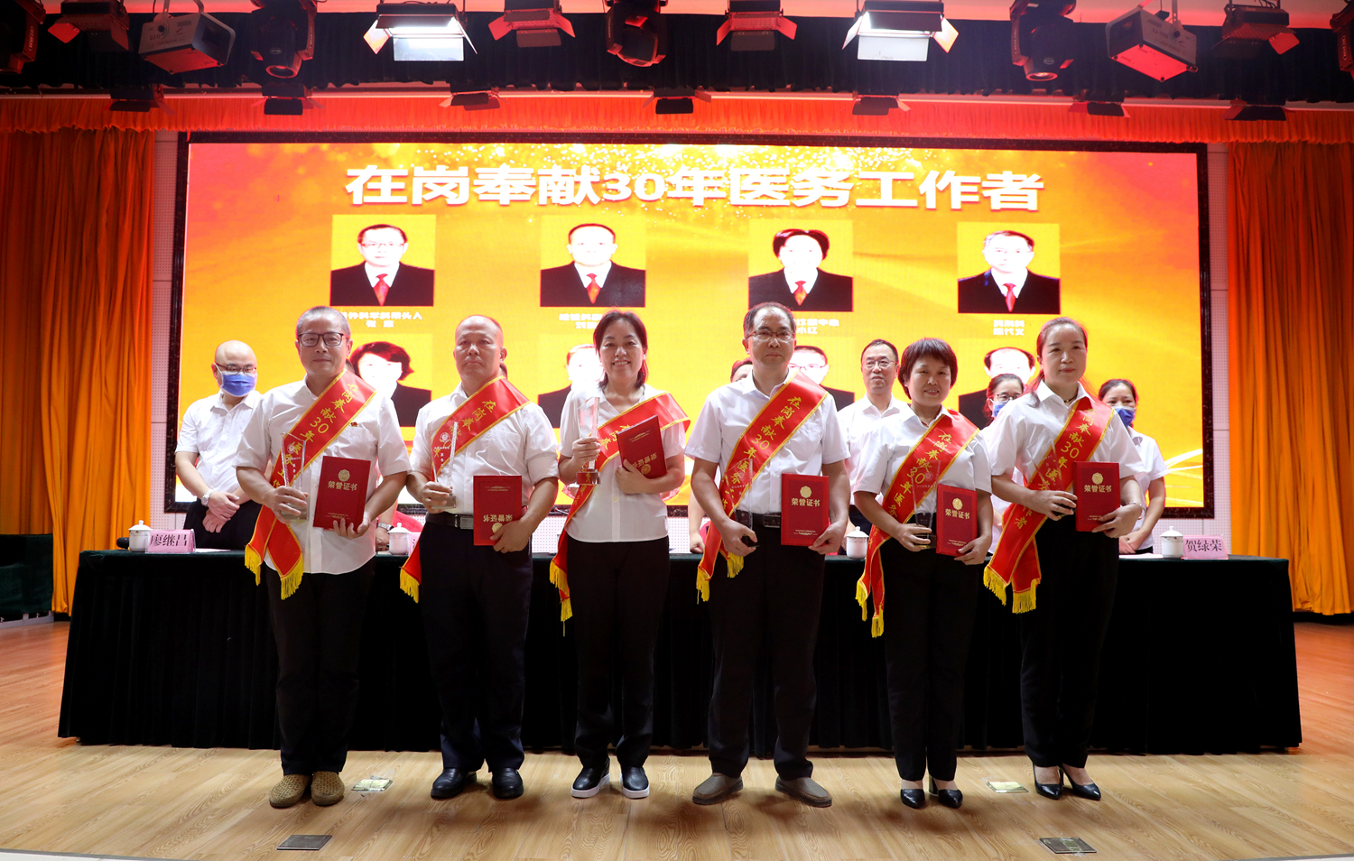 今年8月19日是第五届中国医师节,以“‘医’心向党,踔厉奋进”为主题。为迎接党的二十大胜利召开,弘扬崇高精神和伟大抗疫精神,激励广大医务工作者崇尚先进、学习先进、争当先进,8月15日晚,绥宁县人民医院举办庆祝第五届中国医师节表彰大会,35名医务工作者受到表彰。县卫健局党委书记、局长莫丛英,中南大学湘雅医院驻绥帮扶的5位专家受邀出席表彰大会,院班子成员及全院400余名医务人员参加会议。 县卫健局党委书记、局长莫丛英首先向受到表彰的35名同志表示了热烈的祝贺,向奋战在医疗卫生战线上的广大医务工作者致以节日的问候和崇高的敬意。她指出,近两年来,院党委一班人精诚团结,带领全院紧紧围绕“大病不出县”目标,在体检中心搬迁运营、提标扩能项目实施、介入导管中心和肿瘤科开科运行、紧缺人才成功引进等方面做了大量富有成效的工作,实现了医院高质量发展的新跨越。站在党的二十大即将胜利召开的新历史起点上,就医疗机构如何汇聚“前行伟力”、奔赴“未来可期”,她强调,一是要守初心,铸仁心,打造一支忠诚担当的队伍;二是要强学科,夯质量,打造一支善作善成的队伍;三是要优服务,廉行医,打造一支群众满意的队伍。她要求,全县广大医务人员务必坚定“一颗红心永向党,矢志不渝跟党走”的信念,一以贯之坚持“人民至上、生命至上”的理念,抢抓乡村振兴重点帮扶的重大政策机遇,在疫情防控、医疗救治等医卫工作中主动想事、主动谋事、主动干事、主动成事,奋力开创我县卫生健康事业发展和“三个绥宁”建设的新局面,以优异的成绩献礼党的二十大! 院党委书记刘文安向受到表彰的优秀科主任、优秀医务工作者和在岗奉献30年医务工作者表示了热烈的祝贺,并向全院医务工作者致以崇高的敬意和节日的祝福!随后,他全面系统总结前一阶段工作成绩,详细部署了下阶段工作任务。他指出,目前医院正处在提标扩能快速发展的关键时期,全体干部职工务要见贤思齐并立足岗位、踔厉奋进,锚定三级医院创建目标和患者安全目标,以切实提升医疗服务水平、优化医疗服务质量、夯实学科能力建设踔厉奋进,勇担护佑人民健康的崇高职责,为奋力推进医院高质量发展和“三个绥宁”建设作出新的更大贡献,以优异的成绩迎接党的二十大胜利召开! 会上,党委委员、副院长兼纪委书记龙运军宣读了《中共绥宁县人民医院委员会关于表彰2022年中国医师节表彰决定的通报》。县卫健局党委书记莫丛英、绥宁县人民医院领导班子为高兴等11名优秀科主任、黄玲玲等16名优秀医务工作者、张忠等8名在岗奉献30年医务工作者颁发荣誉证书及奖杯。 风劲潮涌、自当扬帆破浪,任重道远,更需策马扬鞭,绥宁县人民医院全体医务工作者将秉承医者初心,守护健康使命、“医”心向党,踔厉奋进,为谱写医院高质量发展的新篇章砥砺前行! |