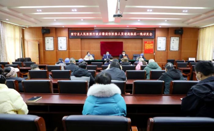 【动员大会】疫情当前,行政后勤岗位医务人员请战临床一线 随着“疫峰”到来,新冠病毒感染人数快速增长,急危重症患者增加,医院医疗救治压力不断增大。为动员全院医护力量,进一步坚定抗疫信念、增强抗疫决心。2023年1月2日,绥宁县人民医院召开行政后勤岗位医务人员请战临床一线动员会。 会上,院党委书记刘文安作动员讲话,他号召全院干部职工:一是坚决扛牢政治责任,当人民群众健康的“守护者”。要发扬“特别能吃苦、特别能战斗”的精神,听从指挥、坚守岗位,积极参与院内医疗救治和应急支援工作,以坚韧不拔的毅力、不畏艰险的魄力,共同筑牢医疗救治的铜墙铁壁,守护好老百姓的身体健康和生命安全。二是切实发挥专业优势,当好医疗救治的“践行者”。要发挥各自专业优势,恪尽职守,用精湛的医疗技术水平、高尚的医德医风,积极投入到临床一线中。三是彰显时代先锋本色,当好医疗救治的“排头兵”。要勇挑重担、敢打硬仗,在危难时刻显担当,主动到最需要、最艰难的岗位上去,务必做到在岗、在位、在状态,以必胜的决心、昂扬的斗志,打赢打好这场战“疫”。