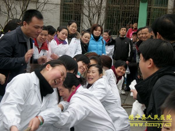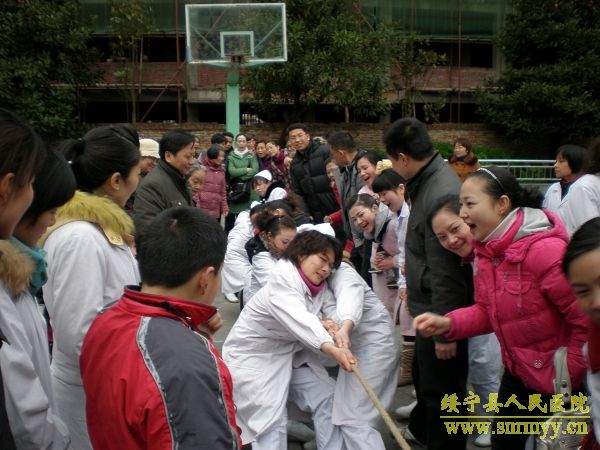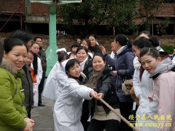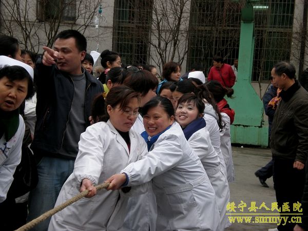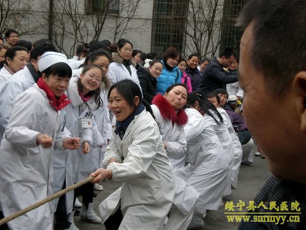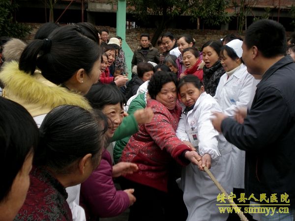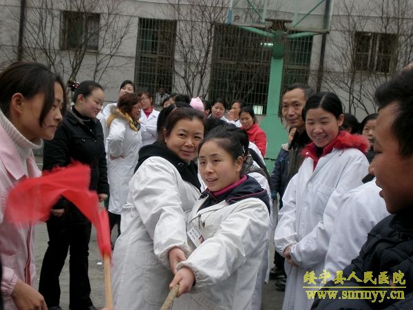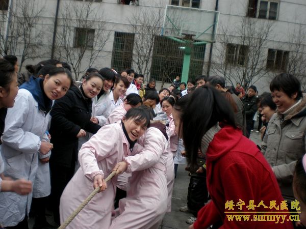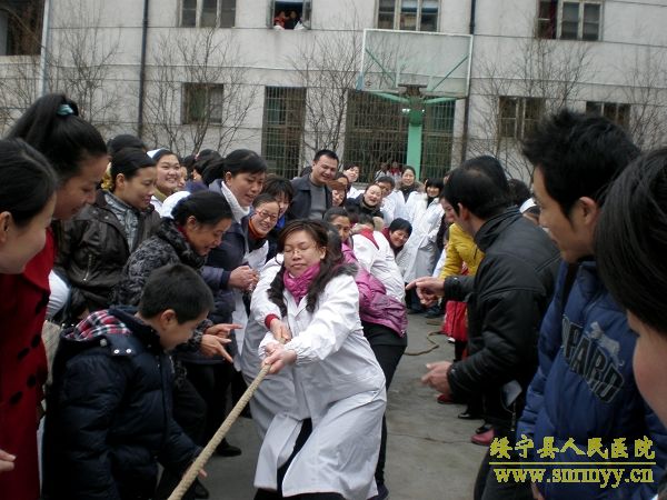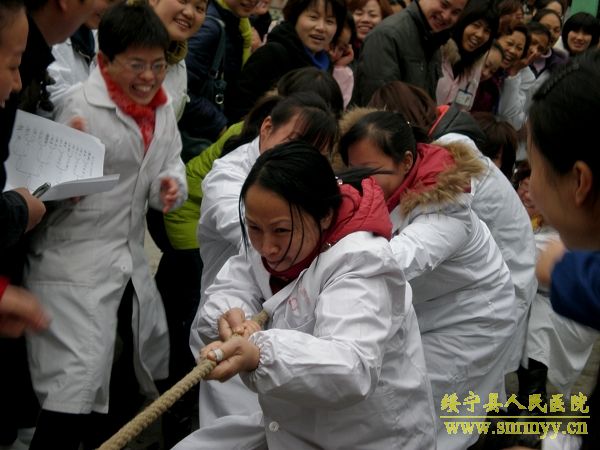 3月8日下午,在第100个“三八”国际劳动妇女节到来之际,为进一步提高妇女同志的健康水平,丰富医院文化生活,让广大女职工过一个欢乐祥和的节日,我院举行了以“团结友爱、共创和谐”为主题的庆“三八”拔河比赛。