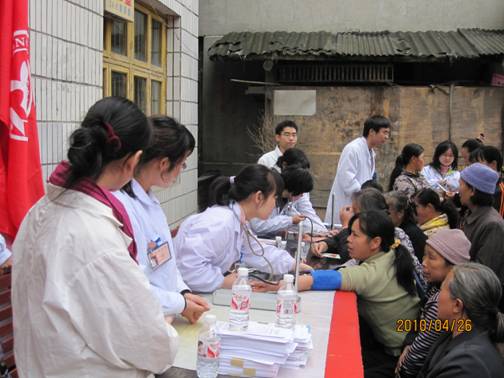 3月26日,湘雅医学院08级的党员、团学会成员近二十余人在我县绿洲广场、乐安乡卫生院开展了“百队千村入万户”大型医疗卫生服务活动。我院作为中南大学湘雅医院对口支援单位全程参与了此项公益活动。