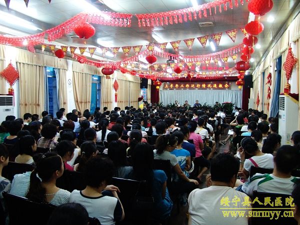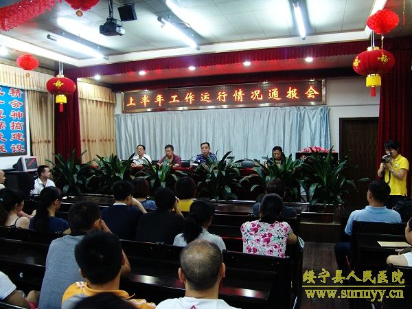 7月16日晚上7:30,我院创建“全国百姓放心示范医院”动员大会暨上半年医院经济运行情况通报会在多功能会议室召开,会议由杨昌林书记主持,龙健安院长做上半年经济运行情况报告。