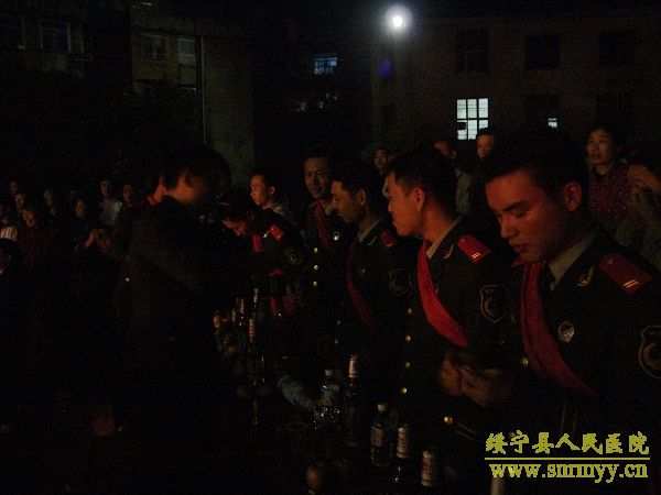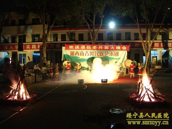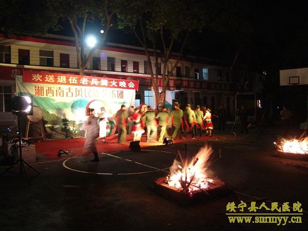 铁打的营盘,流水的兵。11月22日晚,县武警中队欢送退伍老兵篝火晚会在县武警中队营内举行。我院作为双拥模范和警民共建单位应邀参加了联欢晚会,并与部队官兵在熊熊的篝火中载歌载舞。晚会上,院长龙健安、书记杨昌林勉励老兵们把部队过硬作风带回家乡,发扬军人勇敢顽强、吃苦耐劳的精神,积极投身家乡建设,在新的岗位上再立新功、再创辉煌。精彩的晚会始终洋溢着军民鱼水欢、战友情意深的难舍情怀。篝火中一曲《驼铃》把联欢推向高潮。