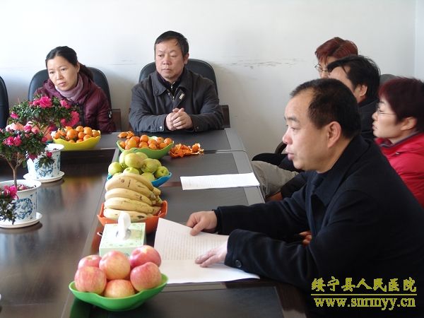 2010年12月17日下午,邵阳市宣传部副部长林少林一行,针对我院精神文明建设及创建省级“文明单位”的申报工作落实情况进行了综合检查考评。 汇报会上,院长龙健安讲到2010年医院以争创“全国百姓放心示范医院”、创建“省文明单位”、深入开展“争先创优”活动为契机,以行风建设为切入点,加强职业道德教育、规范医疗服务行为、保障医疗质量安全,落实四个文明建设取得长足发展。并就医院管理、人才建设、硬件建设和文化建设几个方面的工作情况进行了汇报:2010年是医院发展的关键一年,医院抓住以国家重点建设县级医院的良好契机,争取国债资金,兴建总面积4800M2共六层的医技大楼;争取了总面积13800M22050万元的项目资金,建设共十三层的综合住院大楼。同时与中南大学湘雅医院建立了对口扶贫关系,通过“请进来”,聘请湘雅医院专家教授入驻我院业务指导和临床示范,“送出去”,选送优秀医务人员到湘雅医院进修学习,强化了医务人员综合素质,提高了医院整体医疗水平,打造特色专科,提升了医院核心竞争力。 林少林副部长及市、县宣传部领导认真听取了汇报,并现场查看资料,他指出,省级文明单位的考察,不仅要横向比较,还要重视纵向比较。他认为:我院近几年来发展速度很快,主要体现在五个方面:硬件建设投入力度大、人才培养不拘一格、医德医风建设扎实务实、文化建设如火如荼、业务学习认真严谨,这也说明了医院飞速发展的今天离不开团结务实的领导班子。他还鼓励干部职工要克服困难,团结一心,加大树立为民服务的理念,为保障绥宁百姓的健康,再上新台阶。