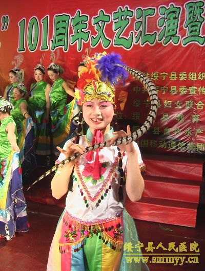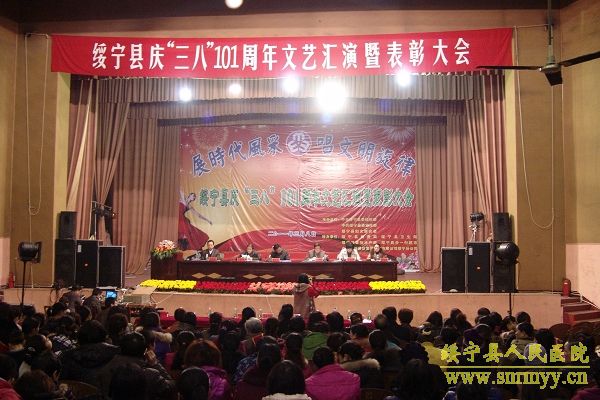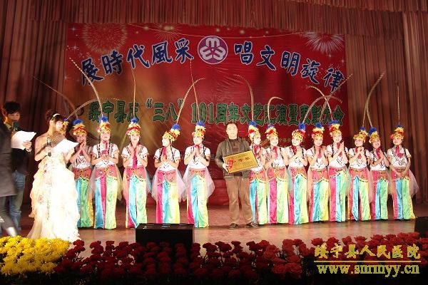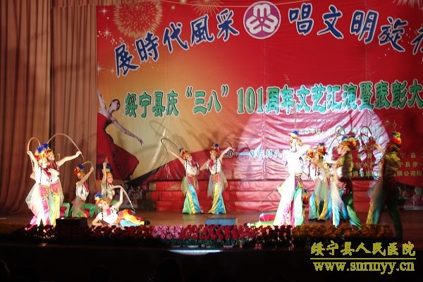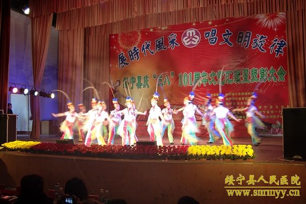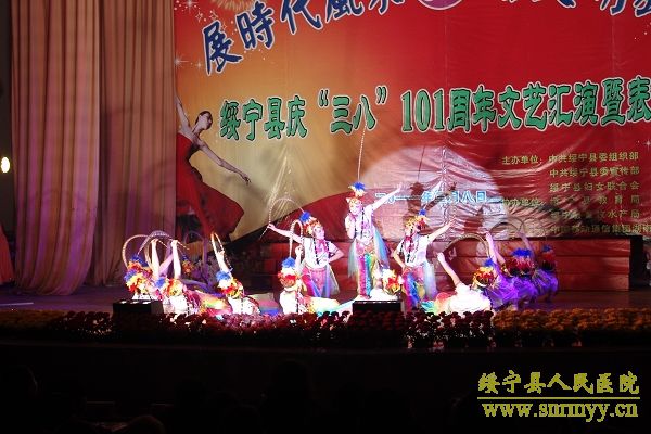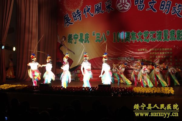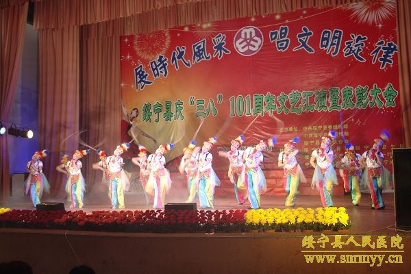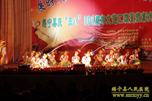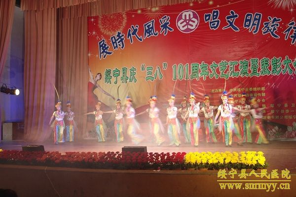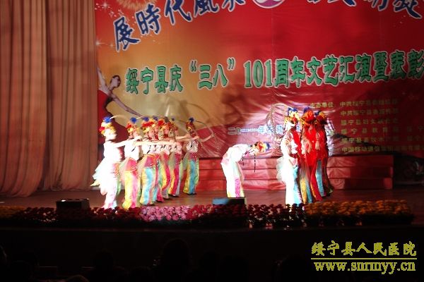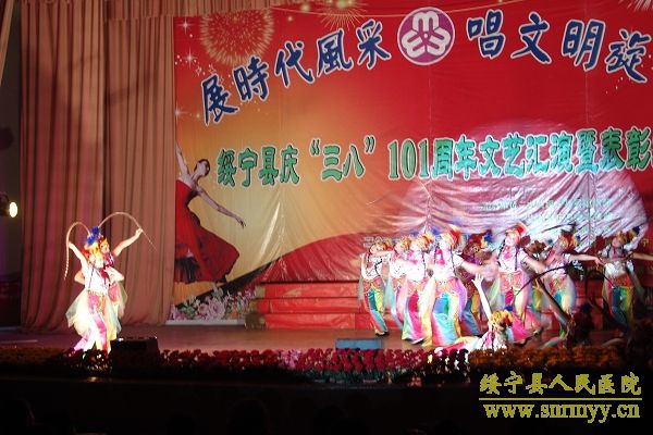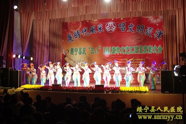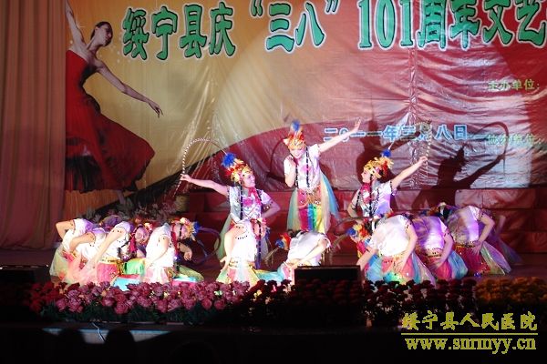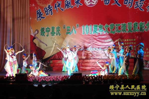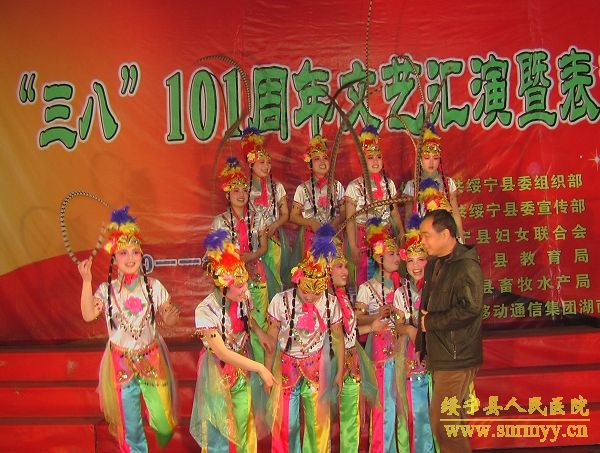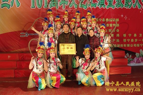 二0一一年三八妇女节文艺汇演在绥宁电影院隆重举行,共有19个节目参加了比赛,我院选送的舞蹈《俏花旦》荣获一等奖。县委县政府领导到场观看了演出,县委常委县委副书记黄民青致辞。