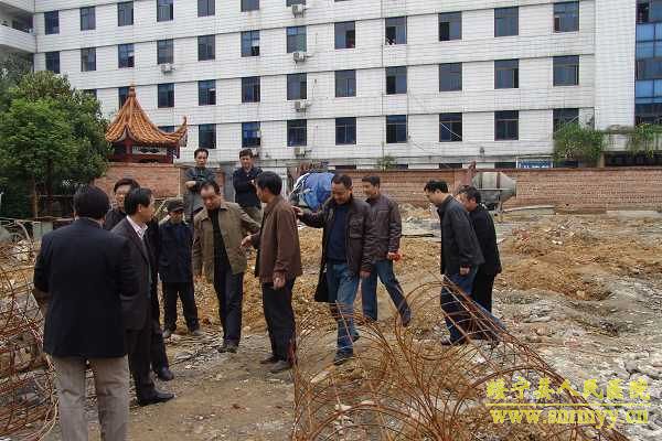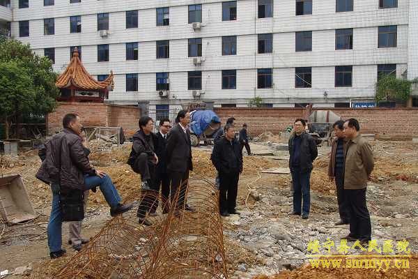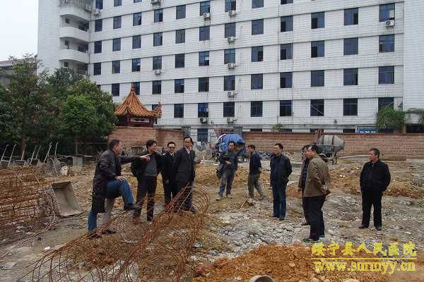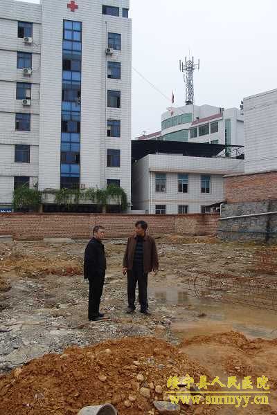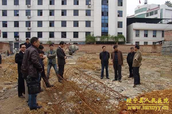 2011年4月12日,市发改委社会发展科科长尹建新,市卫生局项目部经理杨跃明,在县发改局付局长唐振湖及县卫生局局长杨光仁的陪同下,对我院综合住院大楼项目施工现场督察。