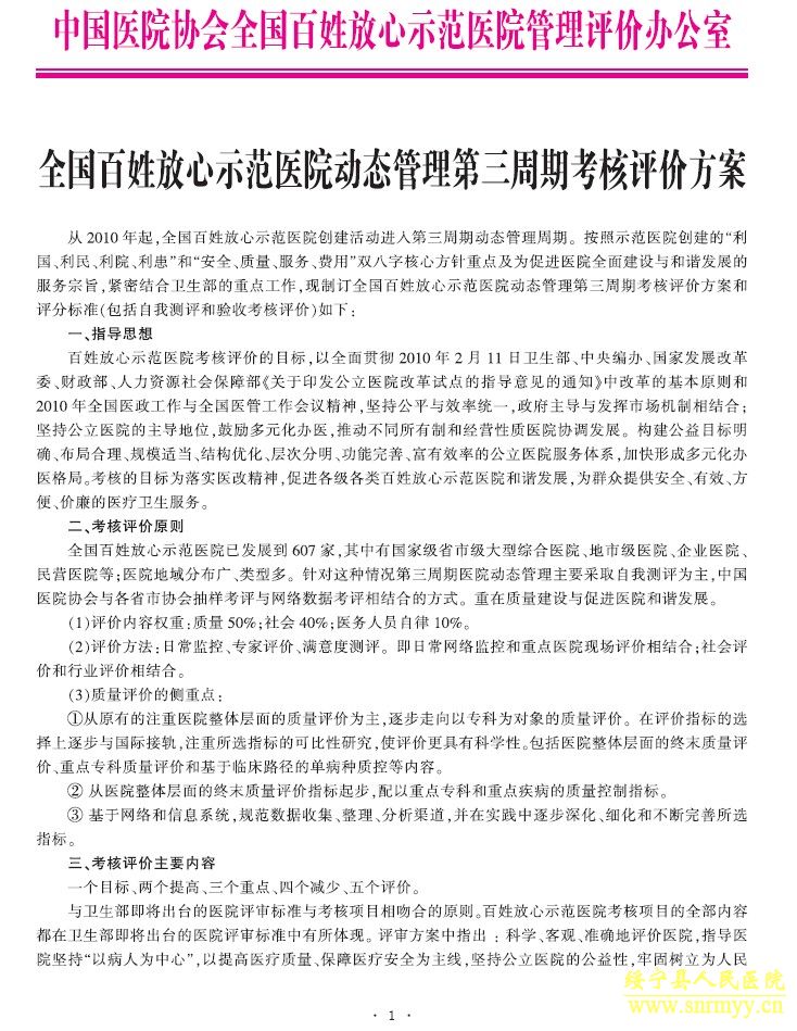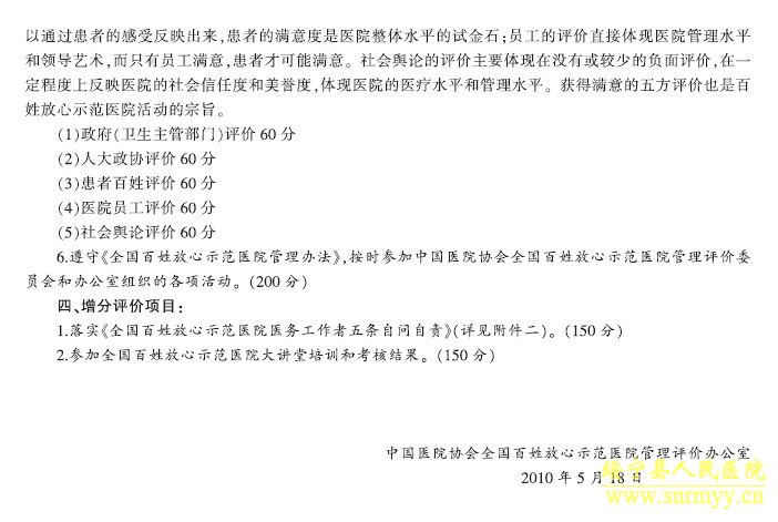 注:《全国百姓放心示范医院动态管理第三周期自我测评与考核评价具体评分标准》解释权由中国医院协会评价与评估部负责解释。