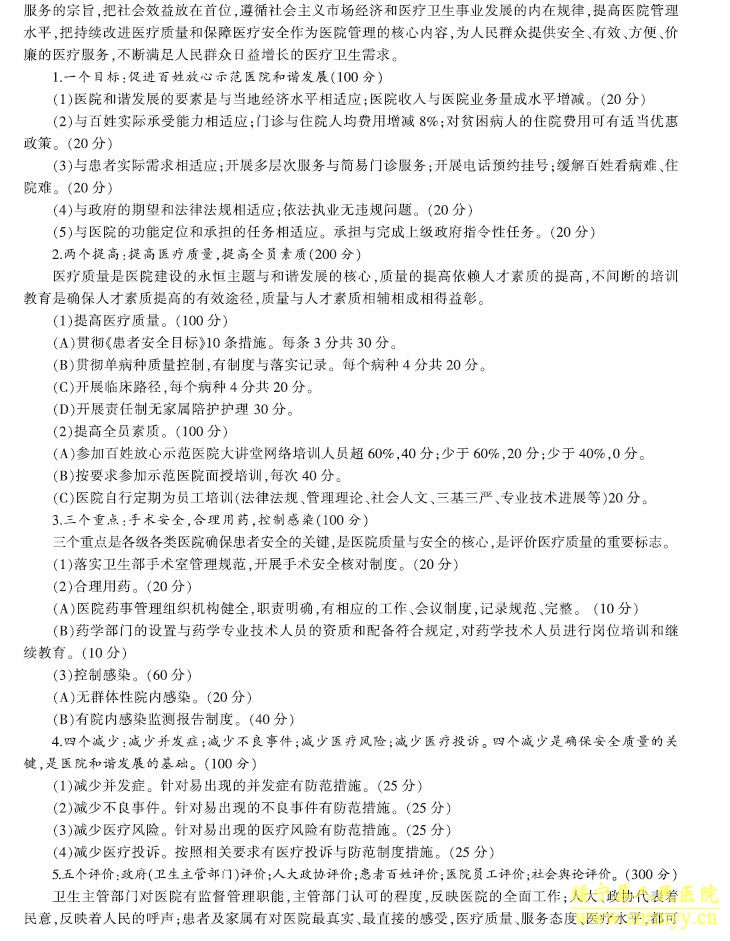 全国百姓放心示范医院动态管理第三周期自我测评与考核评价具体评分标准