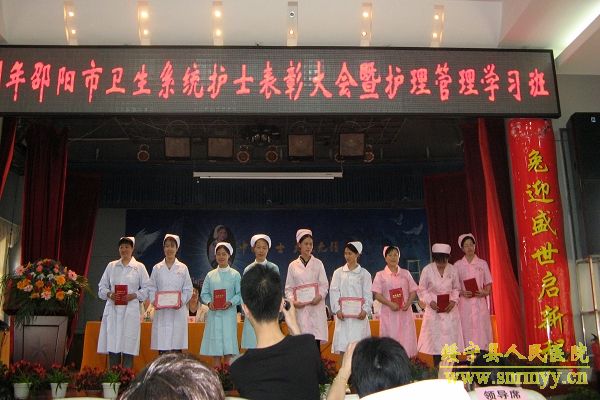 4月27日邵阳市卫生局隆重庆祝“5.12国际护士节”表彰大会暨护理管理学习班在市中心医院举行,大会回顾总结了2010年护理工作,通报表彰了2010年以来,在全市护理工作评比中获得奖励的先进集体和先进个人,我院护理部主任黎丁娥被评为邵阳市“优秀护理管理干部”,外二科护士黄丽云、儿科护士林小莲被评为邵阳市“优秀护士”。