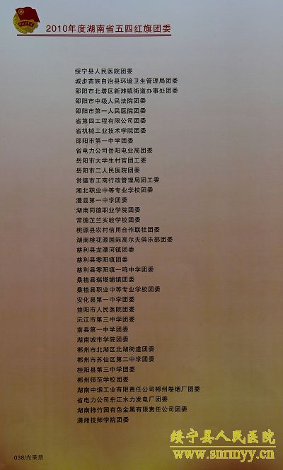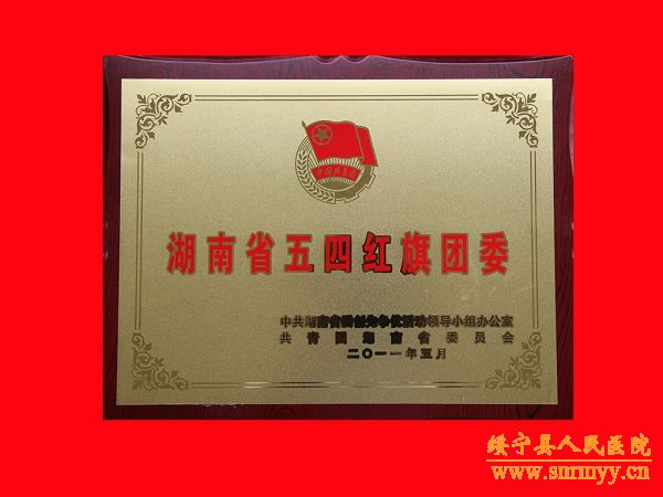 近几年来,我院团组织高举中国特色社会主义伟大旗帜,以邓小平理论和“三个代表”重要思想及党的十七大精神为指导,深入贯彻落实科学发展观,按照党建带团建的总体要求,紧紧围绕医院工作大局,深入开展创先争优活动,切实加强团的组织建设,积极创新新形势下增强组织功能和活力的新途径,开展了大量卓有成效的工作,我院团组织的吸引力和凝聚力不断增强,涌现出一批先进团员。为推进医院建设打开了良好的局面。 2011年5月,经省委创先争优活动领导小组办公室、共青团湖南省委决定,授予我院团委2010年度“湖南省五四红旗团委”称号。