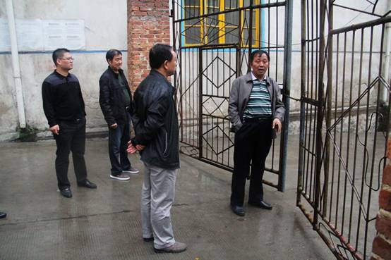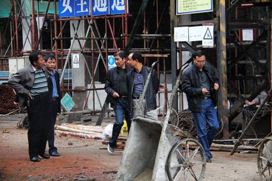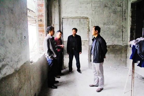杨跃明(右二)在综合住院大楼实地督察项目建设情况
