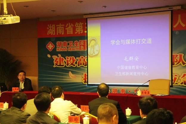 中国健康教育中心、卫生部新闻宣传中心毛群安主任作《学会与媒体打交道》专题讲座