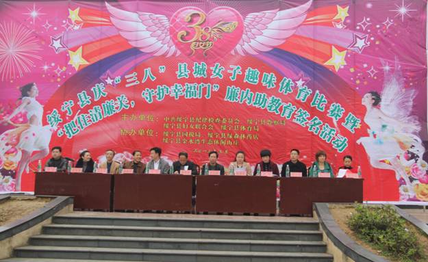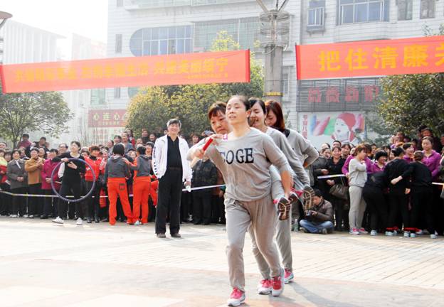 3月8日上午,为隆重纪念“三八”国际妇女节103周年,县妇联、纪委、监察局、体委在县城绿洲广场联合举办了——庆三八县城女子趣味体育比赛暨“把住清廉关,守护幸福门”廉内助教育签名活动。县委副书记袁景甫、县妇联主席胡海英现场致辞,县领导李如意、黄俊玲、吴韬、薛建平、唐艳、杨先光出席活动开幕式。包括我院代表队在内的29支来自县各行业女子代表队参加了此次活动。