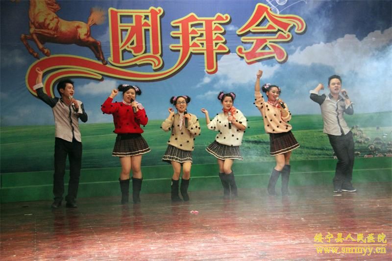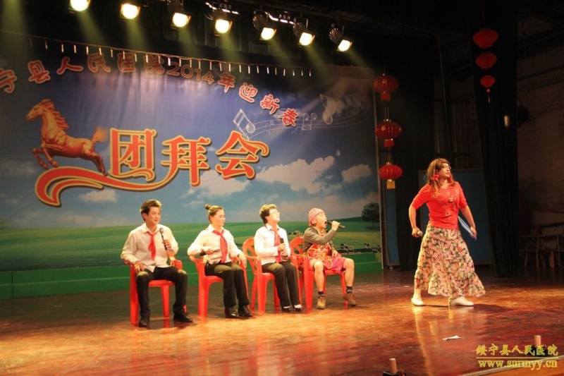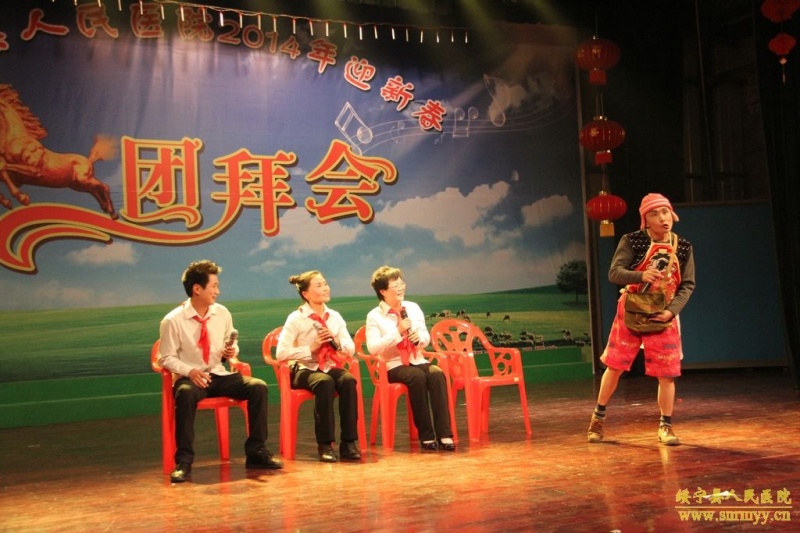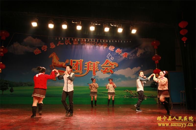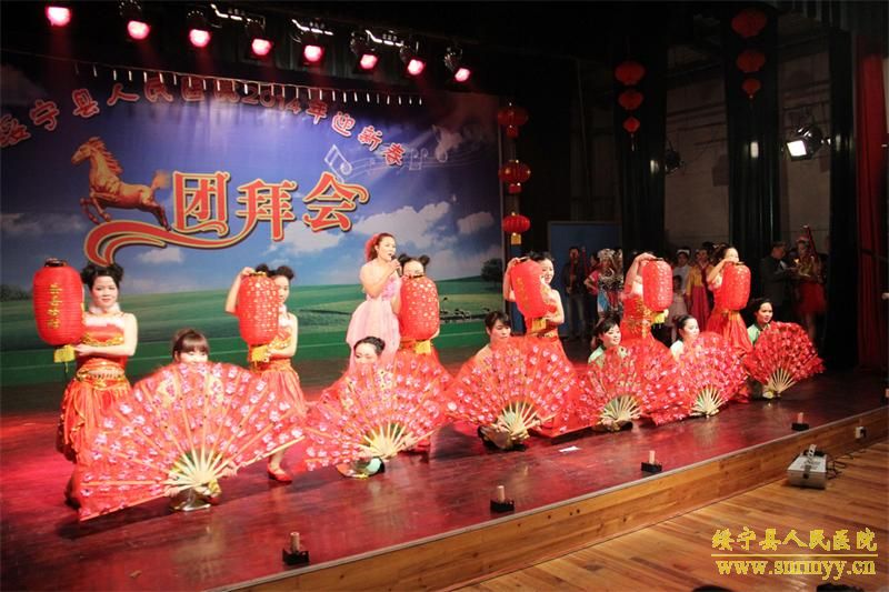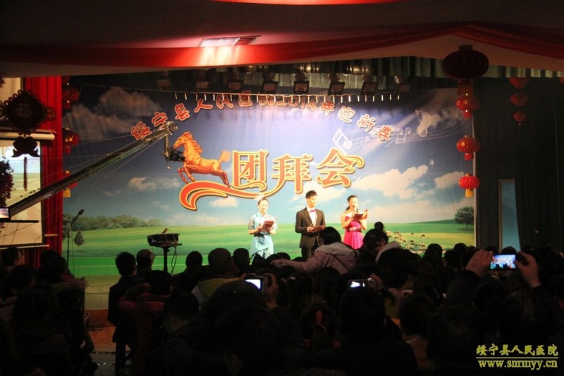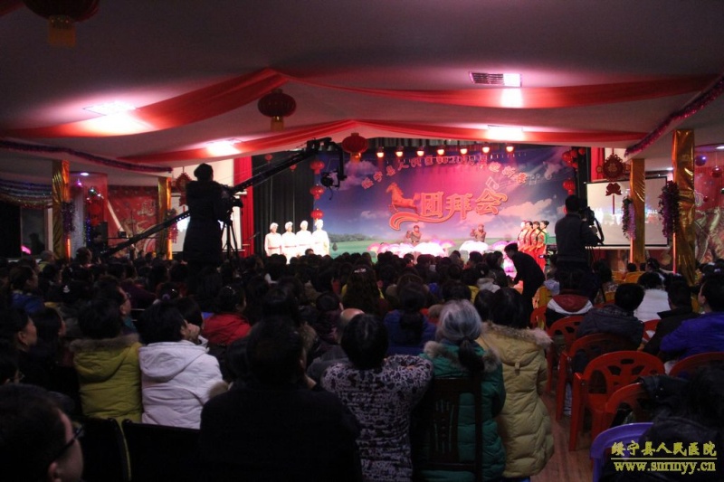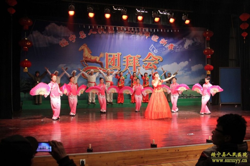 我院举行2014年新春佳节团拜会 1月27日晚,我院在文化馆三楼排练大厅举行2014年迎新春团拜晚会。县卫生局副局长、院长龙健安发表新春致辞,县委副书记袁景甫发表了热情洋溢的讲话。县领导黄俊玲、黄保昆、唐艳、刘宗平及相关部门负责人和医院全体职工参加了团拜会。 团拜会上,院长龙健安发表了新春致辞,他首先代表院班子向莅临团拜会指导的县四大家领导表示热烈的欢迎,向全体员工致以诚挚的问候和新春祝福。县委副书记袁景甫代表县四大家向全体医务工作者致以新春,对县人民医院一年来的工作给予了高度肯定,并对2014年县人民医院的工作提出了希望。团拜会在歌舞《欢天喜地贺新年》优美的舞曲中拉开了帷幕,舞蹈《竹林春风》以本土地域元素为背景,表现了绿洲竹海层峦叠嶂,沟壑幽深,青竹遍布,绿浪起伏,溪水欢腾,淙淙流淌,烟云变幻,气象万千的优美景致;舞蹈《穿新鞋》场景生动,意境感人,以特有的舞蹈语言表达了苗家姑娘喜穿新鞋的喜人场景;情景剧《我的天使梦》以诗歌朗诵,情境再现的表现形式,表现了医务工作者恪尽职守、无怨无悔、无私奉献的精神;团拜会在《难忘今宵》大合唱中圆满落幕。 整台晚会节奏流畅,气韵生动,串联形式新颖别致,颇具地方特色的歌舞、表演唱、小品等13个节目,为全院职工送上了一场喜庆趣味的新春视觉盛宴。 (图文 龙宪智 黄铭培) 银蛇已成旧岁,金马送来新春。踏着春天的脚步,我们又迎来了充满着希望的一年。在这辞旧迎新、欢乐祥和的日子里,2014年1月27日县人民医院在院领导的大力支持下,上演了一出喜庆、欢快充满青春气息的2014新年团拜会。