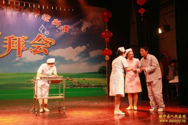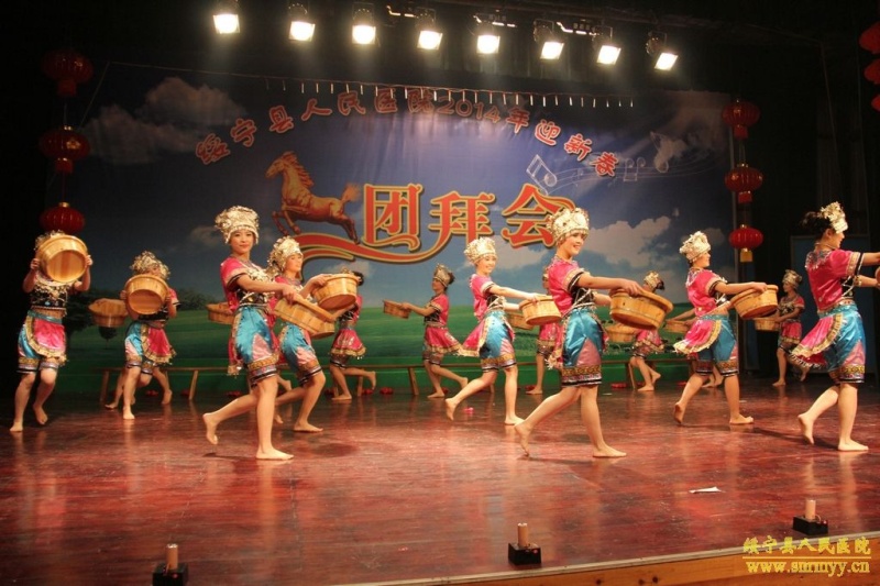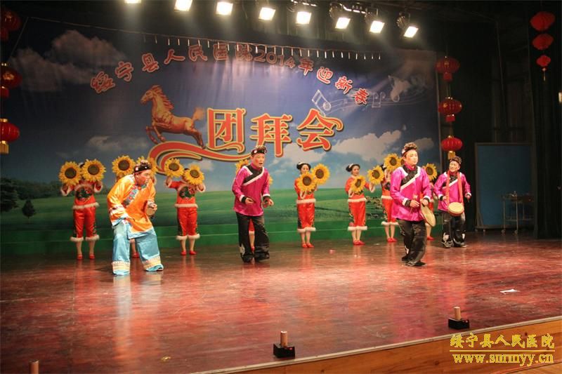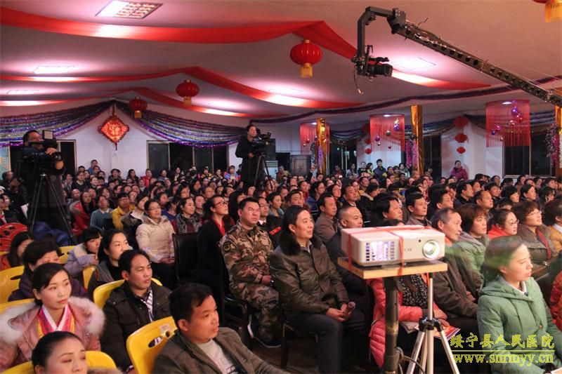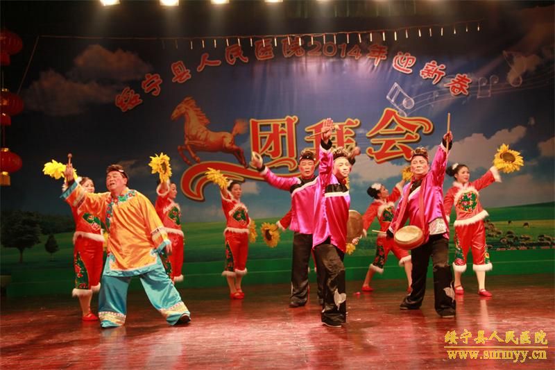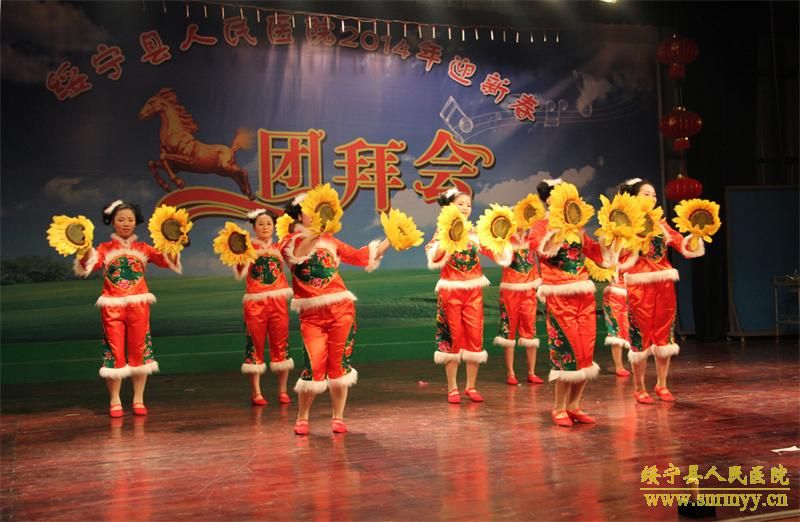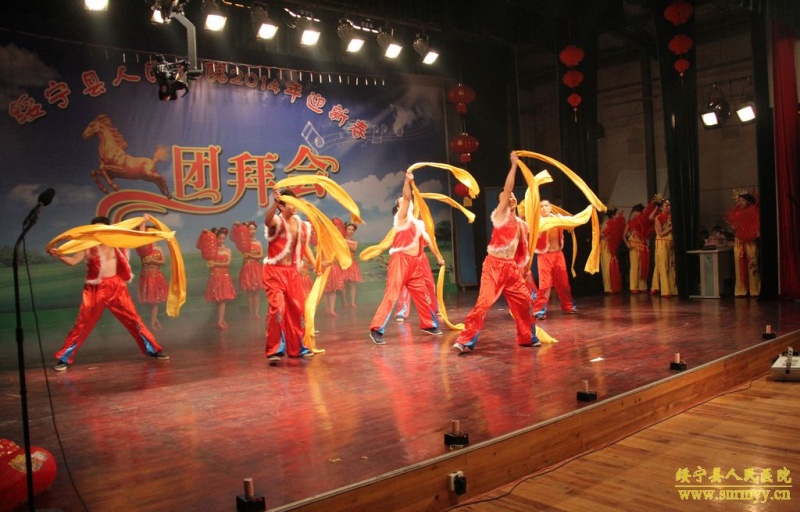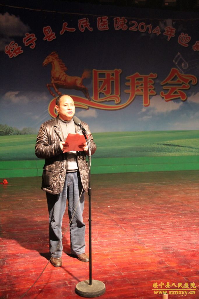 我院举行2014年新春佳节团拜会 1月27日晚,我院在文化馆三楼排练大厅举行2014年迎新春团拜晚会。县卫生局副局长、院长龙健安发表新春致辞,县委副书记袁景甫发表了热情洋溢的讲话。县领导黄俊玲、黄保昆、唐艳、刘宗平及相关部门负责人和医院全体职工参加了团拜会。 团拜会上,院长龙健安发表了新春致辞,他首先代表院班子向莅临团拜会指导的县四大家领导表示热烈的欢迎,向全体员工致以诚挚的问候和新春祝福。县委副书记袁景甫代表县四大家向全体医务工作者致以新春,对县人民医院一年来的工作给予了高度肯定,并对2014年县人民医院的工作提出了希望。团拜会在歌舞《欢天喜地贺新年》优美的舞曲中拉开了帷幕,舞蹈《竹林春风》以本土地域元素为背景,表现了绿洲竹海层峦叠嶂,沟壑幽深,青竹遍布,绿浪起伏,溪水欢腾,淙淙流淌,烟云变幻,气象万千的优美景致;舞蹈《穿新鞋》场景生动,意境感人,以特有的舞蹈语言表达了苗家姑娘喜穿新鞋的喜人场景;情景剧《我的天使梦》以诗歌朗诵,情境再现的表现形式,表现了医务工作者恪尽职守、无怨无悔、无私奉献的精神;团拜会在《难忘今宵》大合唱中圆满落幕。 整台晚会节奏流畅,气韵生动,串联形式新颖别致,颇具地方特色的歌舞、表演唱、小品等13个节目,为全院职工送上了一场喜庆趣味的新春视觉盛宴。 (图文 龙宪智 黄铭培) 银蛇已成旧岁,金马送来新春。踏着春天的脚步,我们又迎来了充满着希望的一年。在这辞旧迎新、欢乐祥和的日子里,2014年1月27日县人民医院在院领导的大力支持下,上演了一出喜庆、欢快充满青春气息的2014新年团拜会。