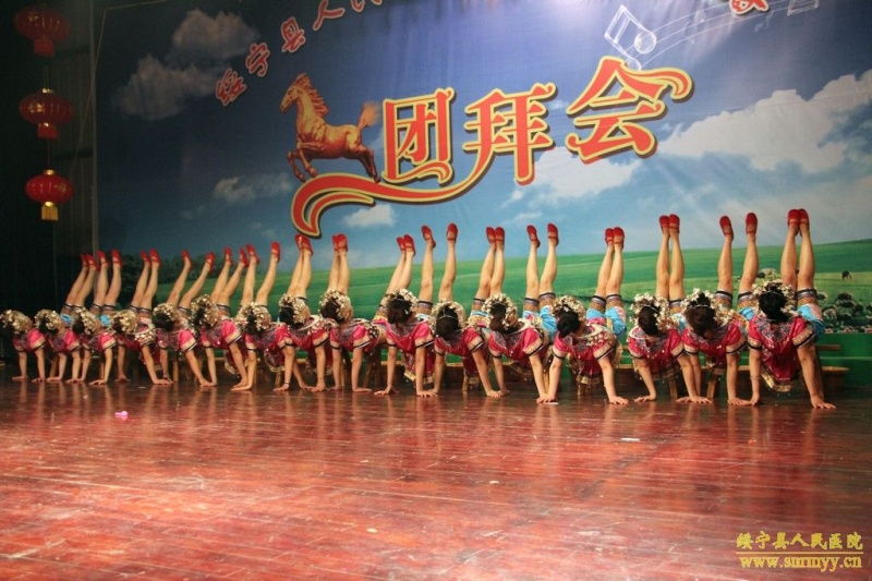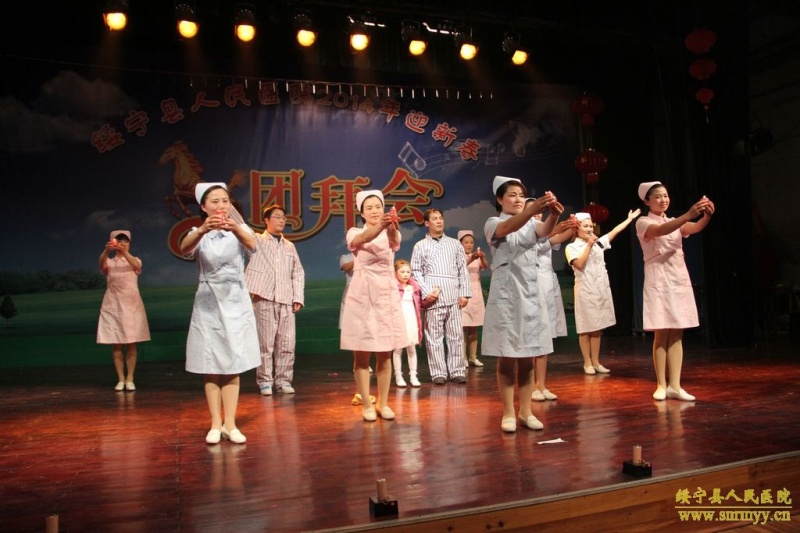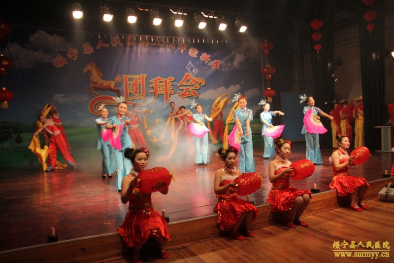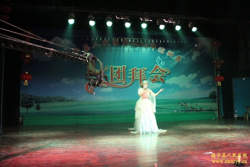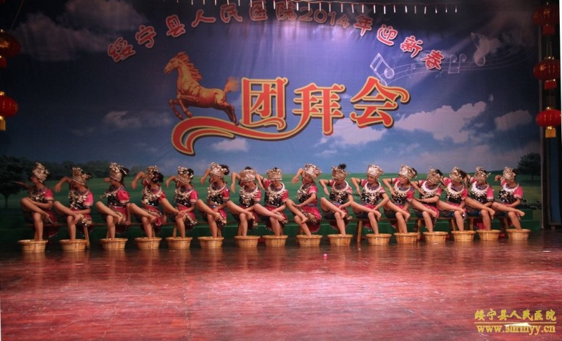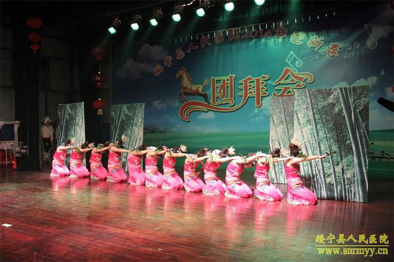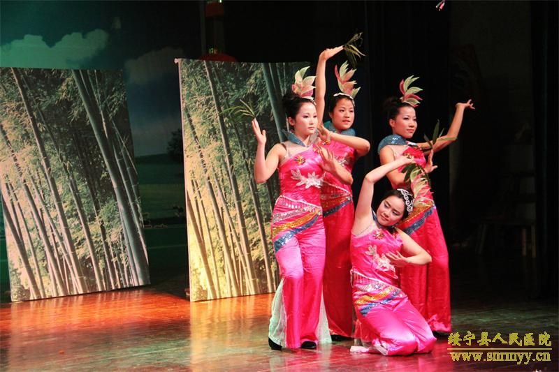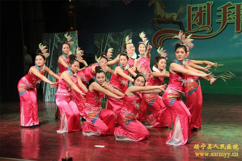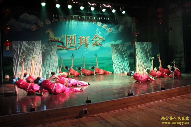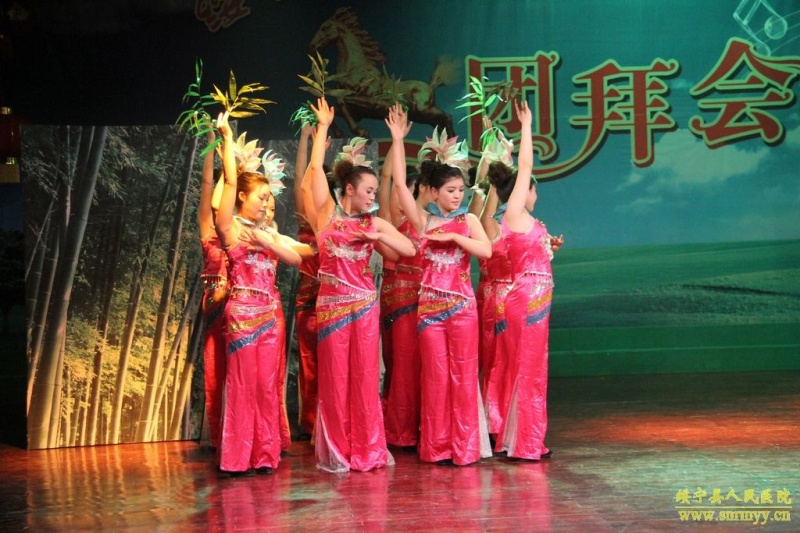 三位靓丽的主持人 龙健安院长新年致辞,他首先代表院班子向莅临团拜会指导的县四大家领导表示热烈的欢迎,向全体员工致以诚挚的问候和新春祝福。他说,医院在过去的一年里,全院职工齐心协力,用汗水铸就了绥宁县人民医院的成就与梦想,同时也提出了2014年对医院发展的期望,鼓励大家在新的一年里同心协力、再接再励,为医院更加灿烂的明天贡献自己的力量! 县委副书记袁景甫代表县四大家向全体医务工作者致以新春,对县人民医院一年来的工作给予了高度肯定,并对2014年县人民医院的工作提出了希望。 由大外科选送的舞蹈《竹林春风》以本土地域元素为背景,表现了绿洲竹海层峦叠嶂,沟壑幽深,青竹遍布,绿浪起伏,溪水欢腾,淙淙流淌,烟云变幻,气象万千的优美景致。 众目睽睽之下,姑娘们不断的魔幻变身,线条柔美,莫不为之叹为绝美。 绿洲的姑娘美貌动人,团拜的节目美妙感人。