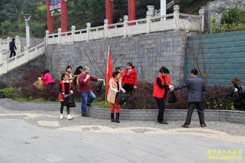 县人民医院志愿者在满顶界公园开展清洁活动 本站讯 3月18日,在县文明委的精心组织下,县人民医院志愿者在满顶界桂花纪念公园开展大型公益清洁活动,受到广大市民的称赞。 满顶界桂花纪念公园常年免费开放,给居民提供了一个晨练、休闲的好去处。但进公园的人多了,卫生状况堪忧,很多游人随意践踏草坪,攀折树枝,乱丢垃圾,影响了公园的环境。 为争创市文明城市和省卫生城市,县人民医院积极响应县文明委号召,组织18名医院志愿者到该公园参加清洁活动。当日上午九时,该院18名志愿者准时来到满顶界公园,他们三个一群、五个一组,分工协作,认真清扫花坛、道路、水沟等地的垃圾,擦拭公共健身器材。县人民医院志愿者热情高昂的劳动场景,为美化城市加分,受到广大市民的普遍好评。(图文 龙宪智 黄铭培)