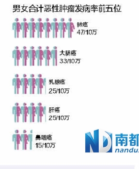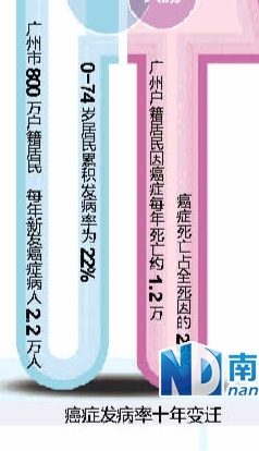 广州每年死亡市民中1/4因癌症 5种癌症发病率相对较高 2014年04月15日 06:09来源:南方都市报 作者:王道斌 万蜜