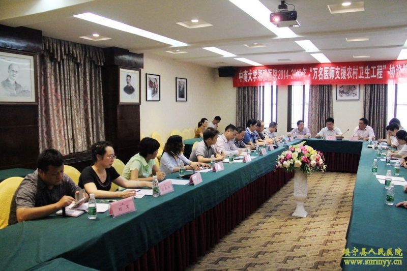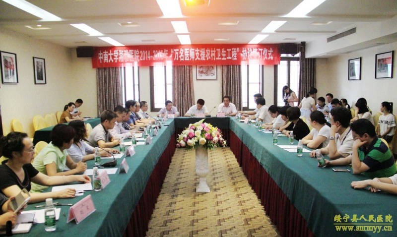8月20日下午,2014年度湘雅医院对口帮扶工作座谈会在湘雅医院召开。湘雅医院肖平书记、唐北沙副院长,省卫计委医政处赵卫华副处长、医政处王浩主任,湘雅医院医务部莫龙部长等十余名湘雅专家及绥宁县人民医院、花垣县人民医院、保靖县人民医院、凤凰县人民医院、通道县人民医院、娄底市娄星区人民医院6家受援医院代表出席座谈会,唐北沙副院长主持会议。我院龙健安院长、工会主席兼医务科科长王爱英、办公室黄民培主任参加座谈会。 会议围绕医疗对口支援及卫生人才培养等相关工作进行了探讨,旨在加大配套支持,以学科建设、人才培养及医院管理为中心,全面推进受援医院医疗技术、医疗质量、管理水平的提升。座谈中肖平书记表示,除常规的派湘雅医生定点入驻支援及减免受援医院医生进修与短期学习的费用外,下一步湘雅还将通过住院医师的规范化培养及西部卫生人才项目培训班形式为对口医院提供帮扶服务。会上,赵卫华副处长充分肯定了湘雅对口支援的成绩。指出,自2005年对口支援项目应医改发展需求应运而生,现已发展成为湖南卫生事业的精品项目。同时,赵副处长以授人以鱼不如授人以渔为切入点,为受援医院留下“我要什么,我怎么要”的思考题。 会上,湘雅医院还与绥宁县人民医院、凤凰县人民医院、通道县人民医院、娄底市娄星区人民医院签订了2014-2015年度“万名医师支援农村卫生工程”协议书。 (编辑:黄铭培、付文娟)