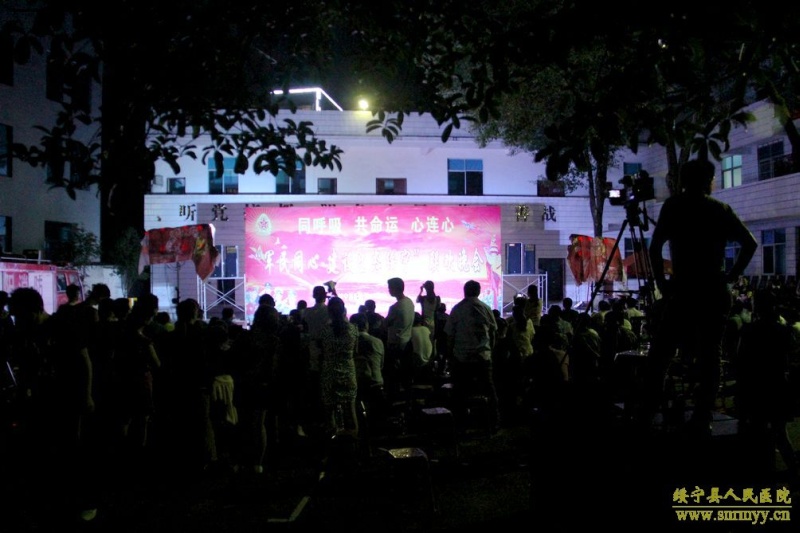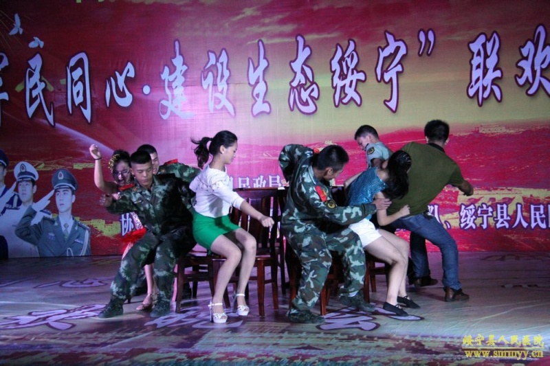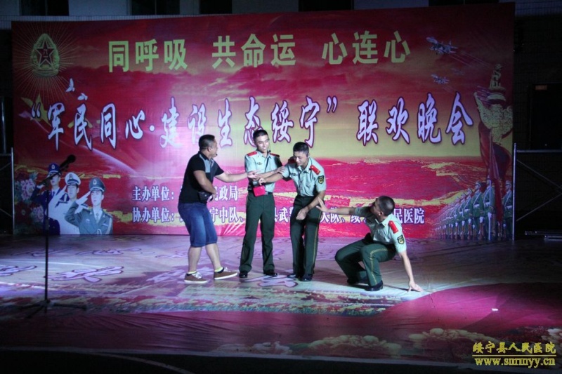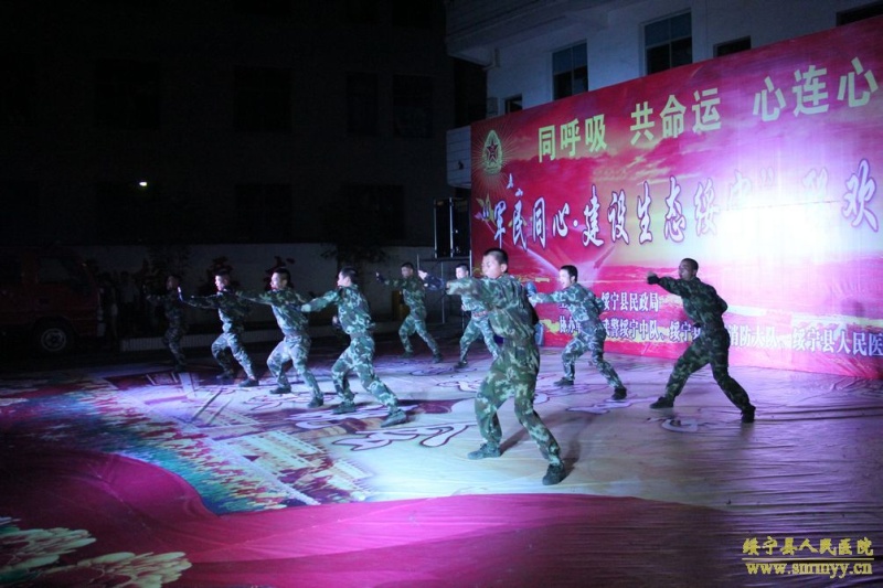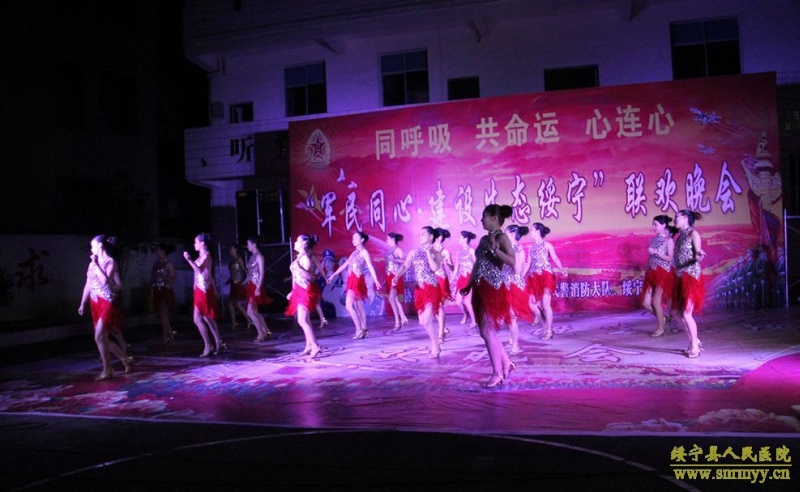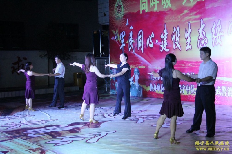 8月27日晚,一场由绥宁县民政局主办,武警绥宁中队、绥宁县武警消防大队、绥宁县人民医院协办的同呼吸、共命运、心连心“军民同心·建设生态绥宁”警民联欢晚会在武警绥宁中队热闹开场。县人民医院党总支书记杨昌林,副院长沈建辉、郑珍出席了联欢晚会。 晚会在悠扬欢快的舞蹈中拉开帷幕。由县武警中队表演的《军体操》、小品《一张车票》展示了战士们热情奔放的阳刚之气和多才多艺的身手,县人民医院带来的《全健排舞蹈》体现了白衣天使健康、自信的时代风采。 整台晚会简朴、热烈,节目精彩纷呈、引人入胜,充分展现了我县经济社会发展蓬勃向上的繁荣景象,同时彰显了同呼吸、共命运、心连心新时期警民团结的鱼水深情。 (编辑:黄铭培)