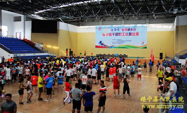 8月8日,由绥宁县总工会、绥宁县民族宗教和文体广电新闻出版局、绥宁县全民健身服务中心主办的2017年8.8“全民健身日”干部、职工长跑比赛在绥宁县体育馆隆重举行。来自县域各单位干部、职工,部分社区群众一千余名健身爱好者参与角逐。