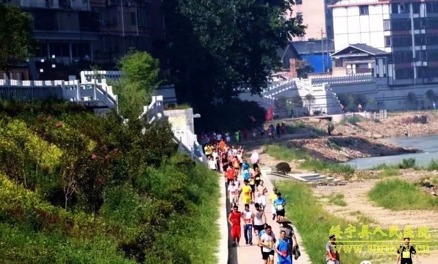 一千余名健身爱好者从县体育中心,沿着黄桑路出发、途经万家坪大桥、风雨桥、长铺大桥、文化长廊、沿河风光带,最后到达绿洲大桥下的休闲广场,全程约5公里。