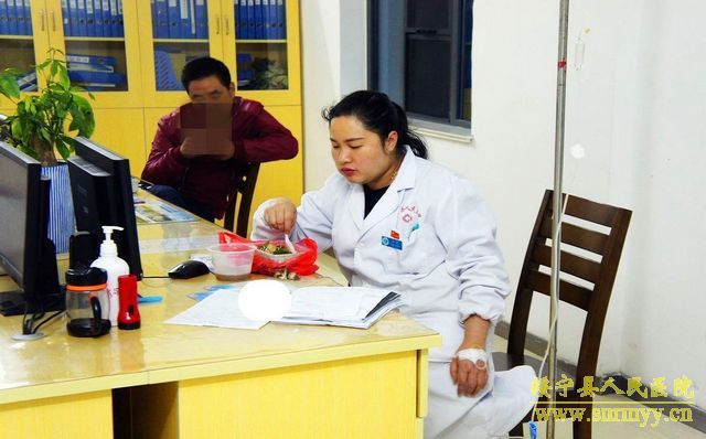 为带病坚持工作的白衣天使点赞 ——绥宁县人民医院神经内科医生刘芳带病坚守工作一线感人事迹小记 作为人们健康的守护者,医生同样也有生病的时候。我院神经内科医生刘芳在生病的时候心里依然挂念着病人,坚持在自己的工作岗位上,用那份热爱和责任,彰显出一名医务人员的高尚品质和无私奉献的精神。 因长期埋头苦干,刘芳医生患下咳嗽变异性哮喘已有三个月,可她却从未放下手里的工作,好好地休息一下。最近,她经常咳嗽、咳痰,偶见低烧,心率不齐,ST段改变,神经内科医生同仁建议她好好休息。可她时刻想着自己的病人,在服药和输液治疗的同时,不顾同事劝解,依然坚持每天到岗工作。从医8年来,刘芳早已习惯了加班拖班,医院人手紧,病人多,业务忙,上白班的她本应17点下班,却硬是拖班加班到晚上,饿了买盒饭吃。 刘芳是隆回县人,爱人陈治国是四川省留绥医师。“医院不同于其它单位,我们没有节假日,大家轮休时,也坚持查房看望病人。我们对家的照顾太少。”舍小家为大家就是两口子的工作与生活常态的写照。32岁的她,还是一名2岁孩子的母亲。还没有坐完月子,她就坚持上班,为减轻两口子的压力,婆婆只得从四川赶到湖南带孙子。医务工作者上班总是起早贪黑,甚至白班、夜班连轴转,孩子很少看到母亲,总是把奶奶叫做“妈妈”。 刘芳所在的神经内科,住院病人多,刘芳个人主管的住院患者高峰时曾达21人,且多为危重病人。但她从不计较个人得失,默默地在自己的岗位勤劳付出。刘芳医生没有豪言壮语,心中始终装着病人,视病人安危高于一切,她用自己的实际行动,默默地践行着“一切为了患者健康”的神圣诺言,恪守着“带着感情下病房,凭着良心开处方”道德准则,穿梭在科室病房,成功救治的患者早已记不清有多少。记得2017年6月17日,刘芳所在团队一天之内成功首次在科室实施两例阿替普酶溶栓治疗急性脑梗死(静脉溶栓)技术,填补了绥宁县在这一领域的空白,大大降低急性脑梗死患者的死亡和致残风险。她良好的医德,高度的爱岗敬业精神,激励着我院许多年轻医务人员,受到患者和家属的一致好评,住在该科46床的黄先生在谈起刘芳医生时,竖起大拇指说:“她每天查房都很细致,勤勤恳恳,有耐心,亲和力强。在她的治疗下,感觉恢复得好,很快就能康复出院了!” 当医生成了病人,她还是医生,还得给人看病! 带病坚持工作,虽不算什么大事,但正是这种小事却彰显出我们医务人员的高尚品质和无私奉献的精神。这位特殊的“患者”就是白衣天使无私奉献精神的浓缩,在即将到来的“5.12”护士节之前,提前祝她们节日快乐,并为她们的精神点赞。 刘芳医生虽然咳嗽、咳痰,偶见低烧,心率不齐,ST段改变,但她仍然带病坚持上岗,所以出现了一边输液、一边吃盒饭、一边工作的情景。这张照片是在刘芳不知晓的情况下抢拍的。 虽然身体不适,但是刘芳医生的工作没有一丝懈怠,从早上7点30分到晚上9点我们发现时,她一直坚守在岗位上。前来探视病人的家属目睹此情景,钦佩不已、感动不已。 (编辑 铭培) |