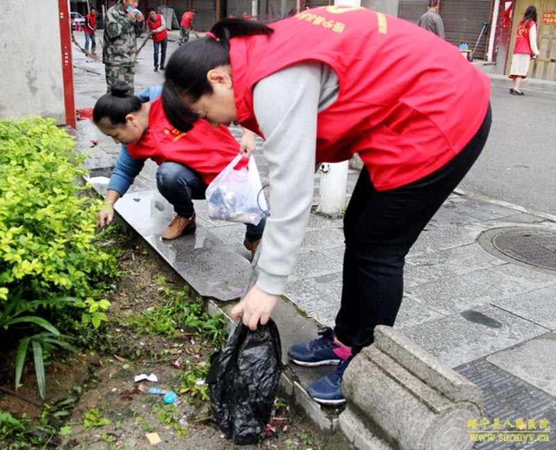 按照县“四城同创”指挥部关于开展全民大保洁、大劝导行动的统一部署,4月29日,我院组织30余名志愿者在县城柏顿酒店至和善广场路段开展卫生大清扫活动,积极引导市民讲文明树新风、讲卫生爱环境的意识。