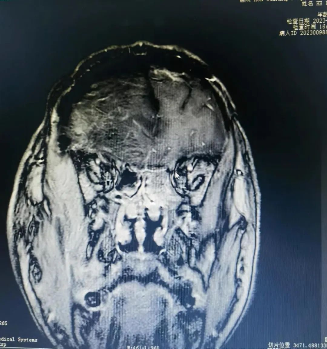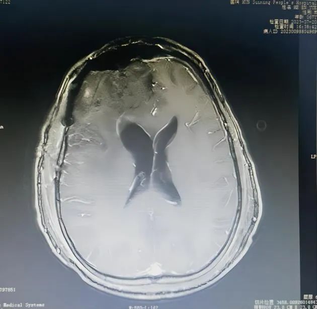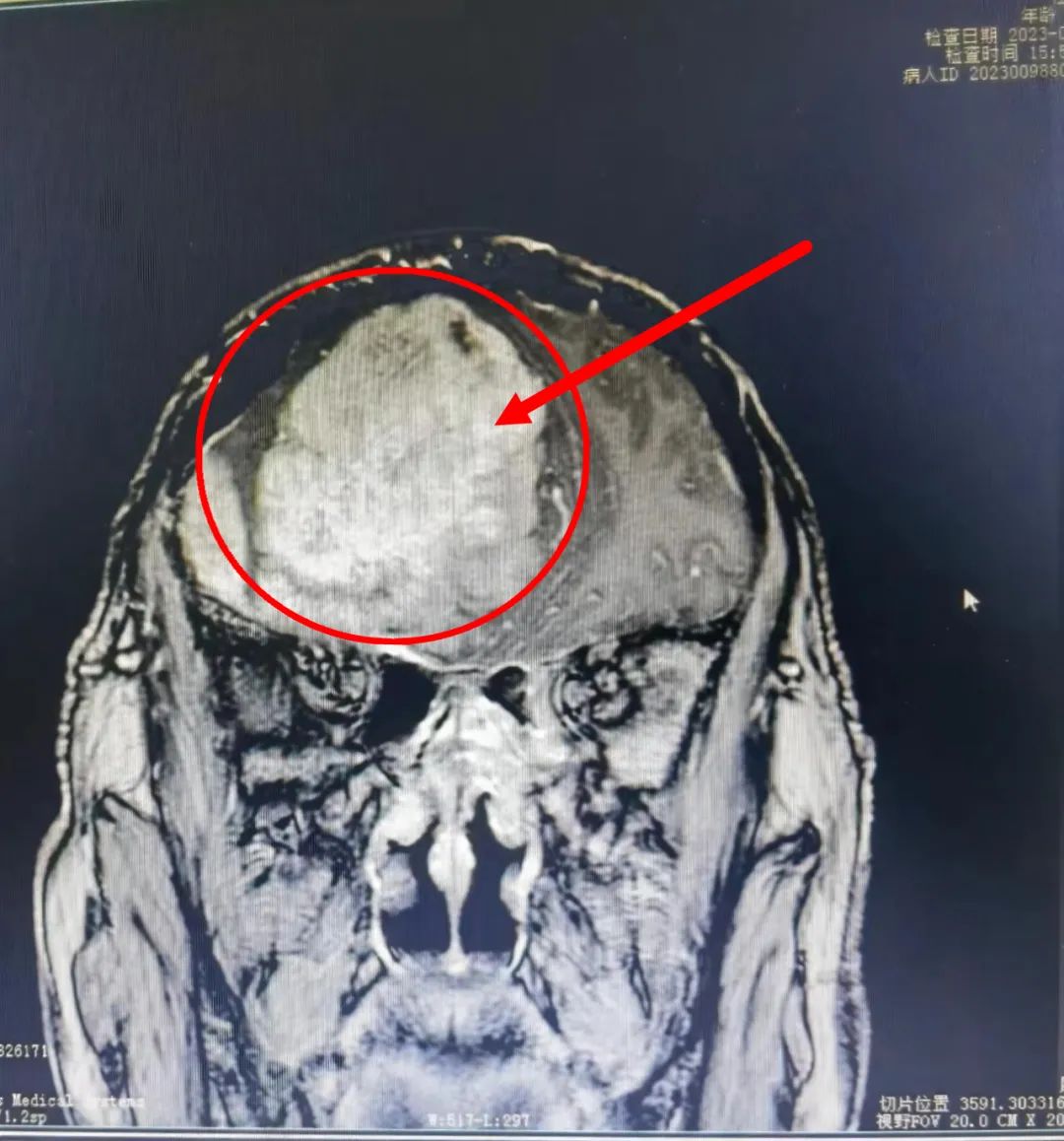 66岁的贺大爷(化名)平时下地干活特别麻利,也特别注重身体锻炼,自觉身体很棒,很少进行健康体检。七月中旬,贺大爷起床后发现眼睛视物不清,偶尔还有头痛、头昏的症状,家属见状立即将其送到绥宁县人民医院就诊检查。门诊CT检查提示右侧额部占位病变,考虑脑膜瘤可能性大,随即入住神经外科,并经中南大学湘雅医院驻绥专家廖新斌博士及县人民医院神经外科主任黄敏认真仔细讨论、会诊后,诊断为右侧巨大脑膜瘤,需进行手术切除。 当听到专家说是颅内肿瘤时,贺大爷顿时愣住了,家属也更加着急起来。廖新斌博士和黄敏主任立即安抚道:“脑膜瘤是颅内常见肿瘤,也是中枢神经系统最常见的原发性肿瘤,多为良性,生长缓慢且隐匿,手术切除肿瘤后均能取得很好的恢复效果,神经功能也能很快恢复。”并耐心为其说明手术治疗的优势和相关事项,对他们提出的各种疑问给予了细致的解答,最大程度地打消了贺大爷及家属对手术的顾虑,最终选择手术治疗。