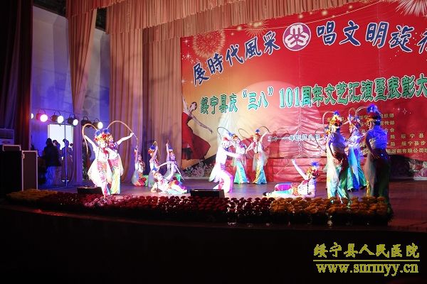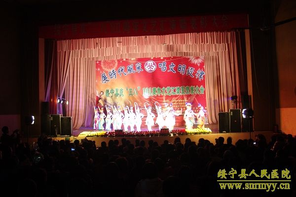 二0一一年三八妇女节文艺汇演在绥宁电影院隆重举行,共有19个节目参加了比赛,我院选送的舞蹈《俏花旦》荣获一等奖。县委县政府领导到场观看了演出,县委常委县委副书记黄民青致辞。