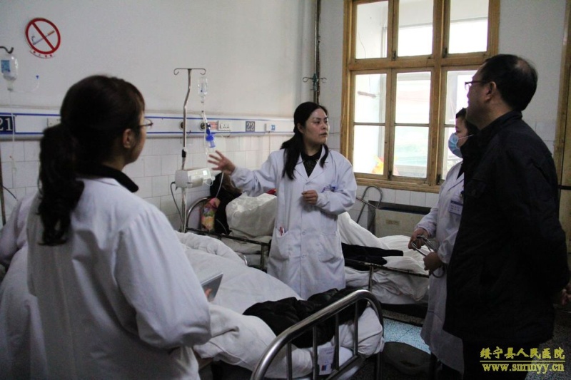 图为:湘雅医院急诊科专家周利平深入病房进行疑难病例会诊