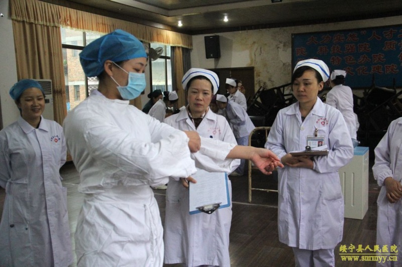 11月18日,我院开展护理技能考核,通过情景模拟,随机抽考了心肺复苏、肌肉注射、电动吸痰、穿脱隔离衣和手卫生、皮试、无菌技术等项目,该院100余名护士参加考试。