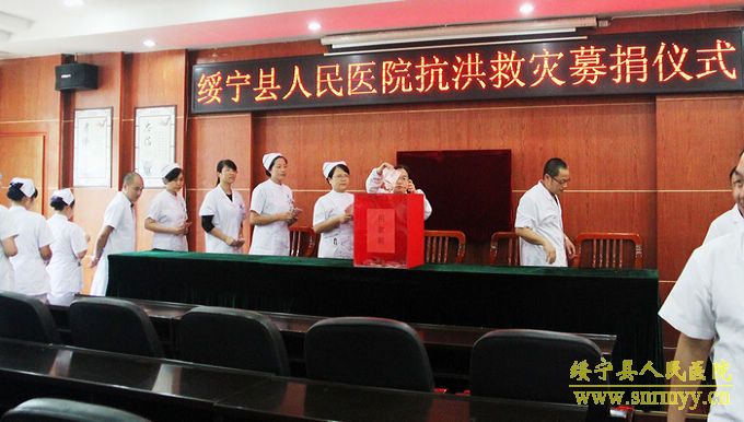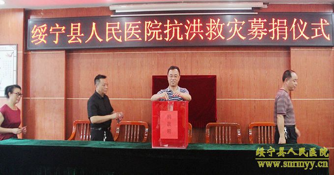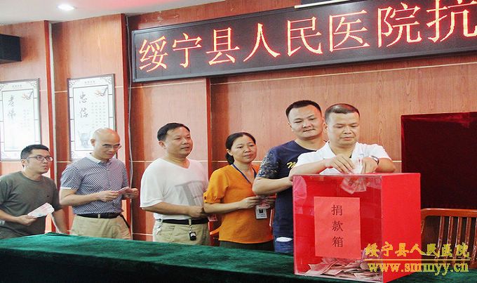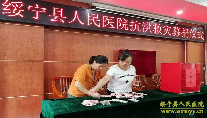 县人民医院抗洪救灾爱心募捐活动在多媒体会议室举行。