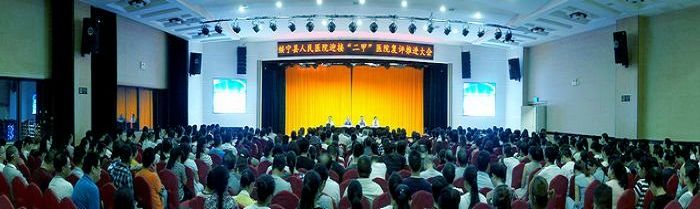 我院召开迎接“二甲”复评推进大会 2017年是我院“二甲”医院复评关键之年,为切实打好这场复评攻坚战,8月29日晚,我院在外科大楼多功能会议厅隆重召开迎接“二甲”医院复评推进大会,打响了我院“二甲”复评“战役”。会议由副院长龙章林主持,院长龙健安、副院长郑珍、工会主席王爱英出席会议,全院职工360余人参加了会议。 会上,院党总支书记、院长龙健安满怀激情,就强力推进“二甲”医院复评工作作了重要讲话。并就“二甲”复评迎检工作提出了三点具体要求:一是明确目标,认清形势;二是分解任务,保证落实;三是强化责任,绩效挂钩。 他强调,全院上下要牢固树立“一盘棋”的思想,密切配合、狠抓落实、强力推进,力争10月通过评审验收。要做到人人肩上有指标,人人都是新形象。这次“二甲”复评只能成功,不能失败;只能通过,不能推后。要把医院评审与年终绩效考核工作相结合;与做好医院日常工作相结合。要以“二甲”医院评审为动力,持续改进医疗服务质量。能否通过“二甲”复评对我院来说至关重要,不仅关系到医院的发展前景、社会影响,甚至关系到广大干部职工的切身利益,我们必须引起高度重视。 本次推进大会的召开,再一次增强了全院干部职工“二甲”复评工作的思想认识,梳理了工作思路,明确了目标任务,为迎接“二甲”复核评审奠定了坚实的基础。 (图文 铭培) 图为:迎接“二甲”医院复评推进大会