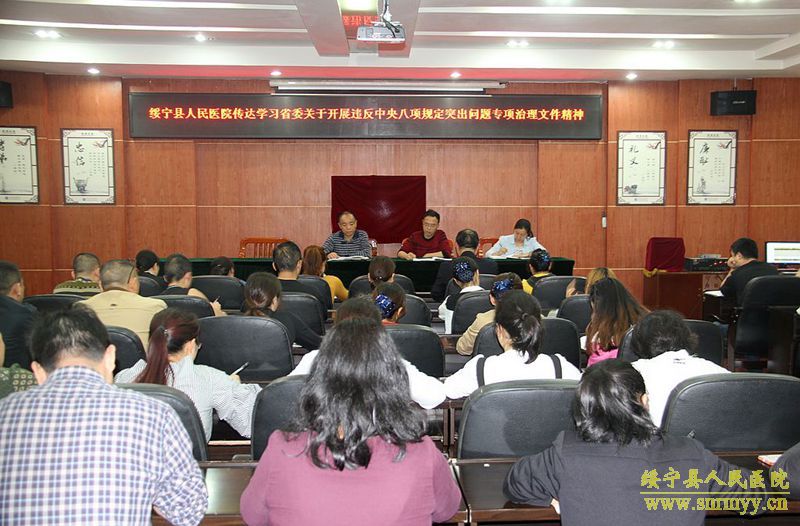 4月23日下午,县人民医院召开专题会议,学习传达中共湖南省委《关于违反中央八项规定精神突出问题专项治理》的文件精神,全院中层干部100余人参加了会议。 会议强调,一是严禁违规公款吃喝;二是严禁违规配备使用办公用房;三是严禁违规收送红包礼金。 会议要求,全体干部职工要牢固树立“四个意识”,提高政治站位,把专项治理抓深抓细抓实抓到位;开展自查自纠,对每张公务接待票据、每间办公用房、每笔红包礼金,逐一清理核实,必须严标准、严整改、严处理。要以此次专项治理为契机,全面开展执行中央八项规定精神监督检查,落实到位。 (编辑 铭培 雅玲) 图为:会议现场 认真记录 |