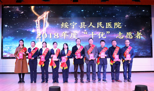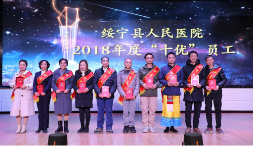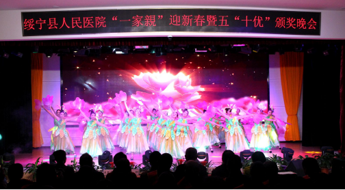 2019年 1月31日晚7:30,我院在外科楼13楼多媒体会议厅举行“一家親”迎新春暨五“十优”颁奖晚会,离退休老同志、在职职工及家属、患者及患者家属欢聚一堂,共迎新春佳节的到来。 2018年,我院创新驱动,6S精益管理市内领先;上下联动,牵手10个省级专科联盟,新增3个省级远程会诊平台,医共体实现了县内全覆盖;狠抓学科建设,开展新技术26项,卒中中心、危重孕产妇抢救中心、危重新生儿抢救中心顺利通过省级专家验收;进村入户巡诊138个行政村,开通先诊疗后付费及“一站式”结算服务平台,为全县脱贫摘帽注入健康保障。医院发展好事连连,先后获得了市卫计系统“最美医院”、省优质护理服务表现突出科室、省优质护理服务表现突出个人等多项荣誉。 晚会上,先后表彰了“十优管理者”、“十优医师”“十优护士”“十优员工”“十优志愿者”“优秀团队”,用榜样的力量引领全院职工奋勇争先、创新图强,推动医院发展再上新台阶。各科室精心编排的红歌联唱《听妈妈讲那过去的事情》、情景剧《不忘初心》、民族舞蹈《赶集》、组舞《红色娘子军》、音乐小品《团圆》等节目,以动听的旋律、优美的舞姿、真挚的情感,深深打动了现场的观众,博得阵阵掌声和欢呼声。 (秦玲玲 付文娟)