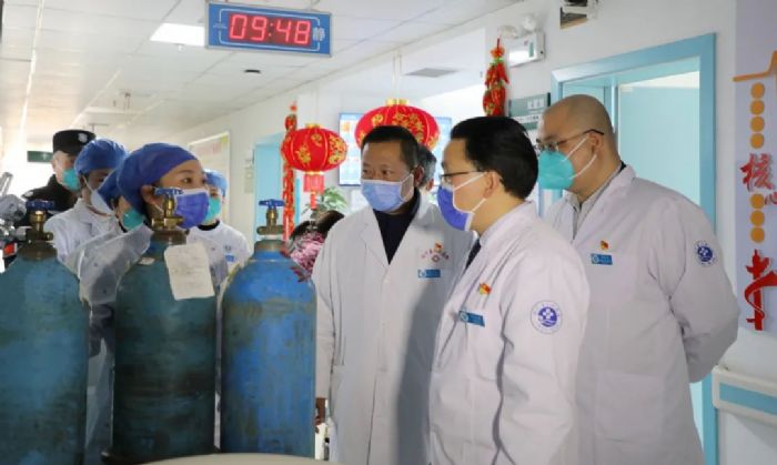 瑞兔迎新年,关怀如春暖。1月19日,绥宁县人民医院党委书记刘文安、院长沈建辉带领班子成员及部分职能科室负责人,深入全院各临床、医技、行政后勤等科室开展节前慰问及安全生产大检查,为坚守在一线的工作人员送去新春祝福和节日慰问。 “目前有多少住院患者?过年期间有多少患者留院治疗?”“人员排班情况如何?”“有没有什么困难?”每到一处,院领导都详细询问科室春节期间值班值守安排及患者收治、安全生产等情况,并针对存在的问题和困难,现场办公予以解决。 慰问中,院党委书记刘文安对全体职工勇挑重担、攻坚克难,日夜奋战在医疗救治一线和后勤保障防线,千方百计满足人民健康需求、全力守护群众生命健康安全,确保疫情防控平稳渡峰所作出的努力和贡献致以崇高的敬意和衷心的感谢。就春节期间工作安排,他指出,一是要合理安排值班值守力量。要对春节期间留院治疗的患者做到数据清、底子清,并据此留足值班值守人力,备好应急支援人力,以科学合理的排班确保劳逸结合。二是要驰而不息抓好安全生产。要求全体职工时刻紧绷安全弦,切实把安全生产责任扛在肩上、记在心上、抓在手上、落实在行动上,聚焦主责主业确保医疗安全、聚焦用电用气用氧严实消防安全、聚焦职工宣教抓好出行安全。三是要全力做好医疗救治工作。当前阶段,全体医务人员务必紧扣“保健康、防重症”,全力以赴做好医疗救治工作,确保以充足的医疗力量、充足的药品和医疗设备保障人民群众的就医需求,切实做到应收尽收、应治尽治,当好守护群众身体健康和生命安全的“守门人”。四是要科学防护确保身体健康。春节期间,全体医务人员要坚持做好自我防护,当好自身健康第一人责任,养精蓄锐,在新的一年起好步、开好局。