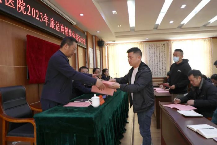 【清廉医院】绥宁县人民医院召开2023年廉洁购销集体谈话会,助力清廉医院建设 为深入贯彻落实党的二十大精神,有效推进清廉医院建设,严格规范医院各类购销行为,营造风清气正的医疗环境和营商环境,3月10日上午,绥宁县人民医院召开2023年廉洁购销集体谈话会议。县纪委监委驻县委办纪检监察组组长何庭贵出席会议并讲话,院党委书记刘文安主持会议,部分班子成员、相关科室负责人及23家医疗设备、医用耗材供应商参会。 会上,党委委员、副院长兼纪委书记龙运军和副院长肖娟分别就设备耗材购销领域规范、廉洁及购销过程中的质量、供应商管理提出了相关措施及工作要求。 县纪委监委驻县委办纪检监察组组长何庭贵在讲话中强调,廉洁购销行为是一项民生工程,是维护群众利益,促进行风建设、强化医德医风,促进清廉医院建设的必要举措,也是医院健康稳定发展的长远大计。就如何构建干净、纯洁的医商关系他提出三点要求:一是要坚守商业道德。购销双方要严格遵守医商的廉政界限,恪守商业道德、遵守职业规范,踏实干净诚信做事。二是要遵守法律法规。廉洁购销是合作的基础,购销双方要严格遵守国家相关的法律法规,坚决把亲疏与远近界定清楚,一起抵制商业贿赂和不正当竞争。三是要担当社会责任。各供应商要认真履约践诺,扎实履行双方合约议定的内容,做到阳光供给,真正为人民群众提供诚信、廉洁的医疗服务环境。 院党委书记刘文安详细阐述了当前医疗购销领域的反腐败形势,并结合医院工作实际提出三点要求:一是要认清形势。党的二十大强调以“零容忍”态度反腐惩恶,医商双方要认清当前医疗卫生领域的反腐倡廉形势,树牢防腐拒腐意识,切实保障患者健康权益。二是要严守纪律。要守底线、讲政治,严格遵守医疗领域九项准则,严格依法依规依程序办事,从源头上防范腐败现象的发生,杜绝医疗购销领域的商业贿赂。三是要加强监督。要加大监督力度,构建良好的“亲清”医商关系,形成防腐败的高压态势,让购销过程在阳光下运行,大力营造风清气正、群众满意的医疗环境,共同推动医院各项事业健康发展。 参会供应商代表现场签订了《廉洁购销承诺书》。 此次会议是绥宁县人民医院不断加强行业作风建设、积极落实廉洁从业行动要求、全力推进清廉医院建设的重要举措,为营造购销领域的清正廉洁氛围,有效预防商业贿赂,实现廉洁行医,发挥重要的作用。  |