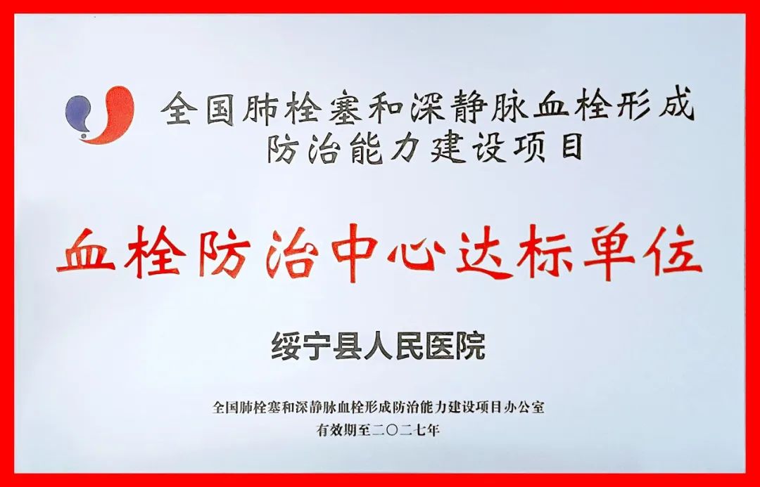 2021年12月,绥宁县人民医院向“全国肺栓塞和深静脉血栓形成防治能力建设项目”项目组提交评审资料;2022年6月29日,评审专家组通过线上听取汇报、资料审查,病历抽查、访谈医务人员和住院患者等方式,从组织管理、医疗技术、信息化建设、护理管理、患者管理、培训教学、科研能力、质量控制等八个方面进行综合考评,对我院VTE防治能力建设成果予以充分肯定。
