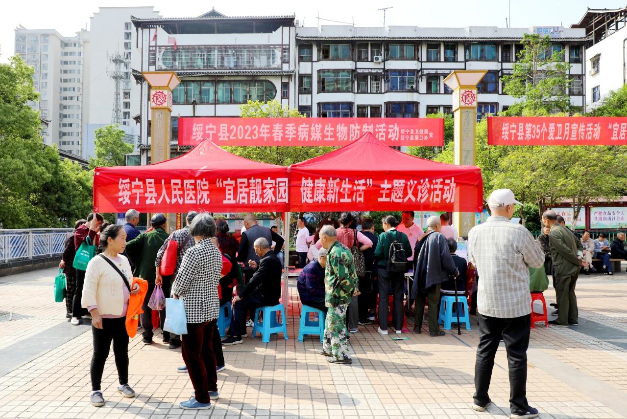 宜居靓家园 健康新生活——绥宁县人民医院开展爱国卫生月主题宣传义诊活动2023年4月份是第35个爱国卫生月。为全面贯彻党的二十大精神,进一步落实习近平总书记关于爱国卫生运动的重要指示精神,筑牢“每个人是自己健康第一责任人”的健康理念,促进形成文明健康绿色环保生活方式,4月20日上午,绥宁县人民医院积极响应县爱卫办号召,组织医务人员在绿洲文化广场开展以“宜居靓家园 健康新生活”为主题的义诊活动。