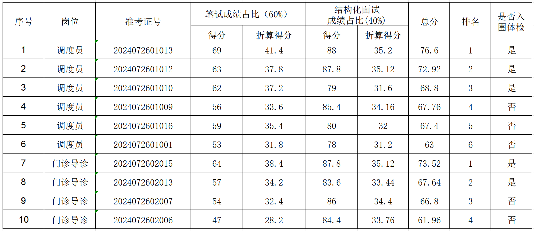 绥宁县人民医院关于2024年7月公开招聘调度员、门诊导诊考试笔试成绩的公示