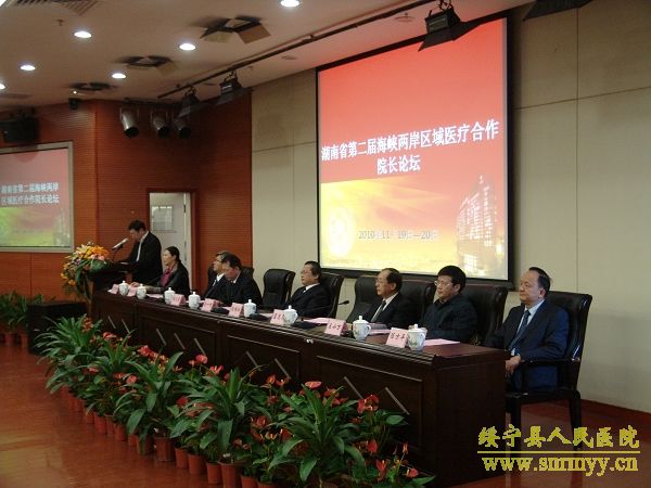2010年11月19日,湖南省第二届海峡两岸区域医疗合作院长论坛在中南大学湘雅三医院举行。此次论坛是湘台医疗卫生行业历史上档次最高、规模最大的一次民间交流活动。论坛有四大目的:一是构建湘台医疗卫生管理经验交流平台,探索公立医院改革;二是深化湘台医疗合作,共同培训全科医生;三是拓宽原路渠道、建立健全合作机制;四是促进湘台医疗技术优势互补、实现互利共赢。